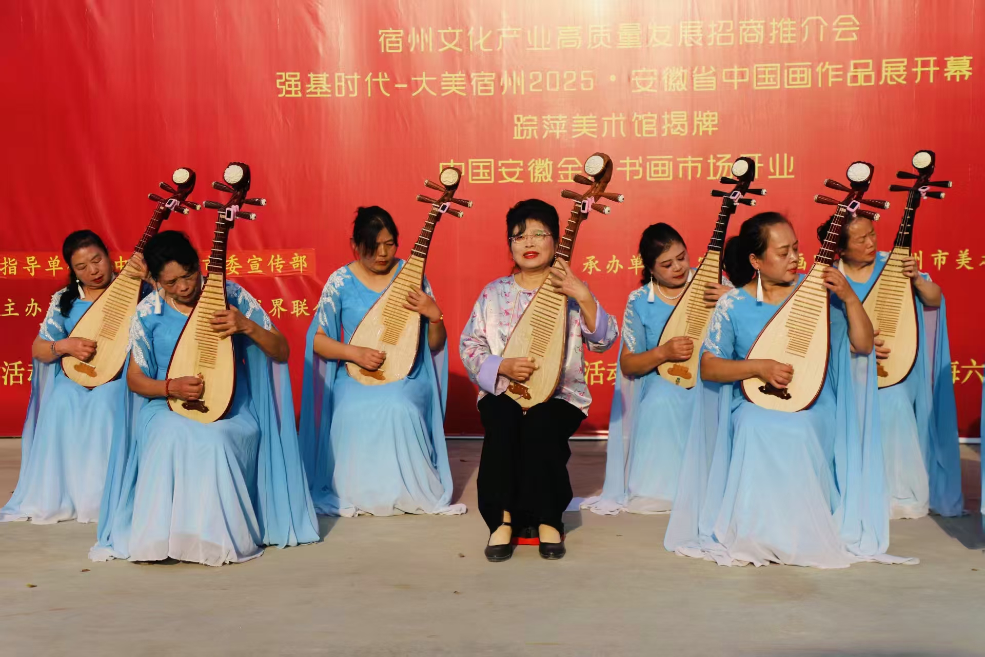 宿州市和埇桥区老年大学琵琶班红歌专场演奏走进宿州金海书画大市场