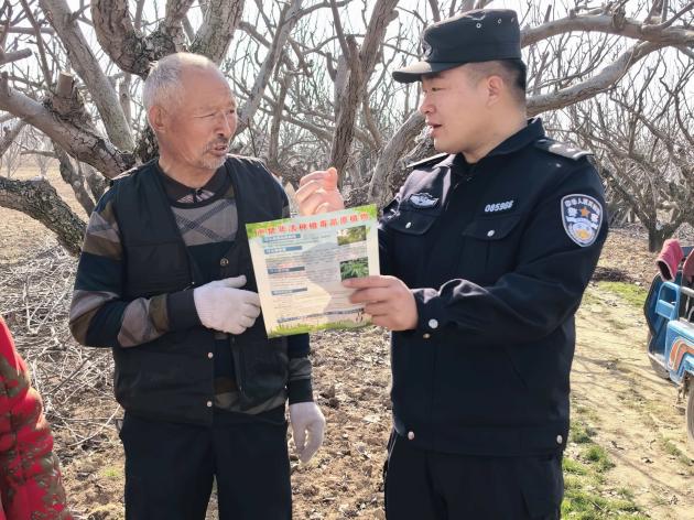 近日,砀山县公安局玄庙派出所民辅警深入辖区田间地头,开展“零距离”禁毒宣传活动。
