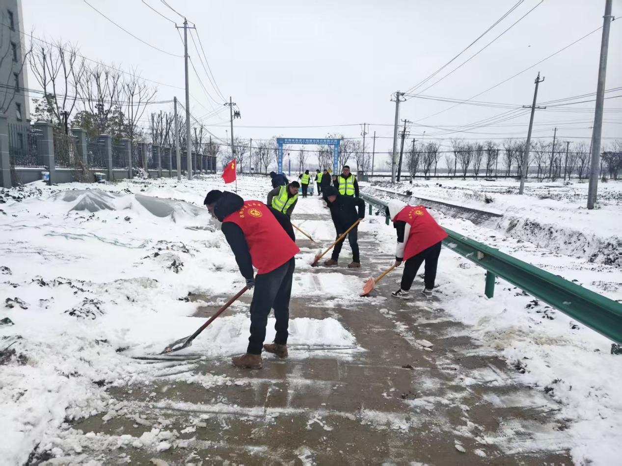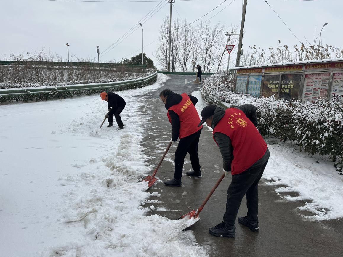 寒潮来袭致普降大雪,道路积雪结冰给群众出行带来安全隐患,1月20日,肥西县三河镇河口村党总支、妇联迅速响应,组织青年突击队与青年志愿者组建清雪队伍,开展扫雪除冰行动。