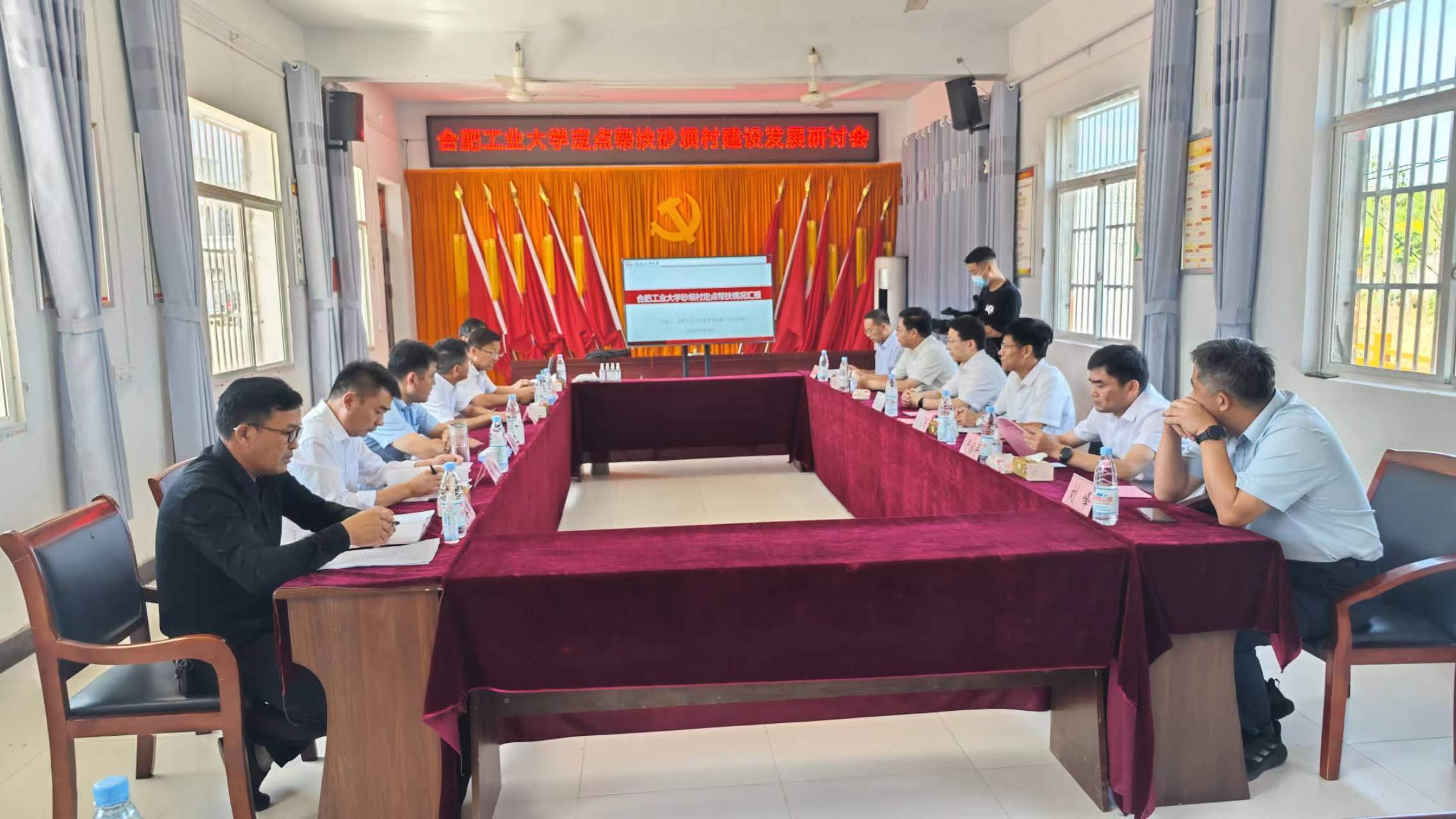 随后,郑磊一行考察了东西和南北大街、新时代文明实践广场、文化墙等工大定点帮扶项目,进一步了解砂坝村的基础设施建设和人居环境改善情况。在工大援建的砂坝村党员活动中心,校地双方召开了砂坝村建设发展研讨会。工大驻村第一书记俞晓平汇报了合工大驻村定点帮扶工作开展情况以及所取得的成绩;砂坝村党总支部书记刘安杰介绍了砂坝村乡村振兴建设开展情况;黄湾镇党委书记胡僧围绕砂坝村乡村振兴建设的规划、政府支持和帮扶需求作了发言。
