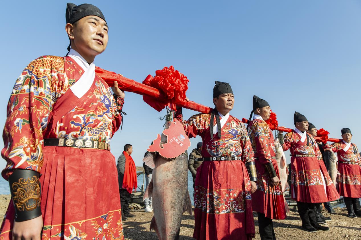 开幕活动现场,杂技表演《鱼竿顶球》、明光传统“非遗”项目《丰收锣鼓》、经典诵读《明光渔耕赋》等精彩文艺节目轮番上演,女山湖河鲜品鉴、春节集市活动也吸引众多在场嘉宾和群众前来品尝参观,让大家在感受渔耕丰收喜悦的同时,共享美食与文化的大餐。