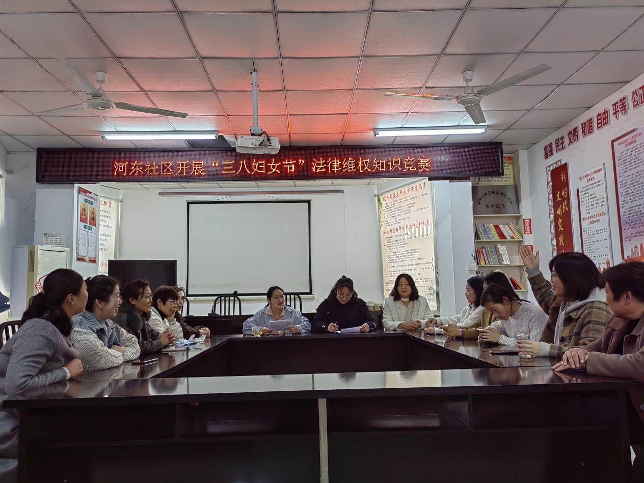 3月7日上午,城关街道河东社区妇联组织辖区内女同志开展了“三八妇女节”法律维权知识竞赛活动。竞赛题目包含了《妇女权益保障法》和《婚姻法》及相关司法解释中对妇女权益保护方面的法律知识。此次活动增强了社区妇女维权的法治观念,同时增加了社区女性同胞的幸福感,促进妇女同胞懂法、用法,依法维护自身的合法权益。