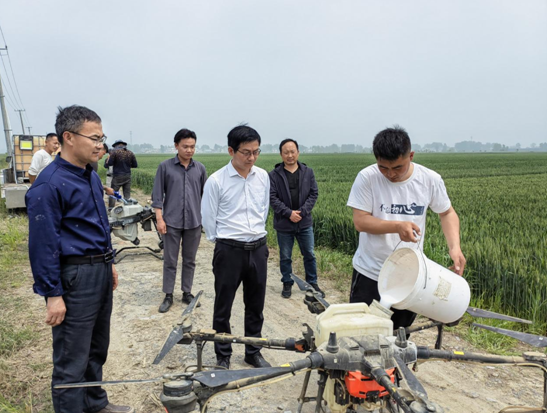 灵璧县农技人员在向阳镇武圩村指导监督小麦统防统治工作