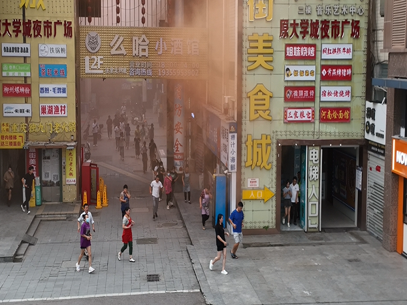 本次演练模拟情景为8月29日下午15时,位于大学城簋街三楼的一间门面房冒出滚滚浓烟,店主发现后立即呼吁周边商户帮忙救火并拨打119报警求援,随后拨打物业电话求援,2名巡逻人员,在听到呼救声也随即赶到现场,经现场沟通与查看,1名巡逻人员立即将情况上报物业公司相关领导,另1人在现场指挥周边商户进行救援及警戒、人员疏散,物业公司值班领导接报后,第一时间将事故信息上报芙蓉社区委并拨打119报警,随后组织人员紧急赶赴现场。物业公司人员和2名巡逻人员现场对接了解情况后开展先期处置。一组人员组织周边商户和消费者等无关人员紧急疏散、撤离;一组人员从就近微型消防站拿消防器材开展灭火;同时,芙蓉社区委相关人员,附近公安、消防、交警、120赶到现场。在芙蓉社区委工作人员和物业保安协助下,公安组织人员紧急疏散、撤离并设置危险警戒线,对现场进行封闭,清退无关人员,维护火场秩序;交警对周边道路实施临时交通管制,保障救援道路通畅;消防救援队救出伤员、展开设备对火场进行扑救;120对伤员进行现场救治后转运。经相关单位通力协作、共同处置,人员已得到妥善救治,现场明火已被扑灭。现场指挥部同步向社会发布灭火救援信息,至此整个疏散演练科目结束。
