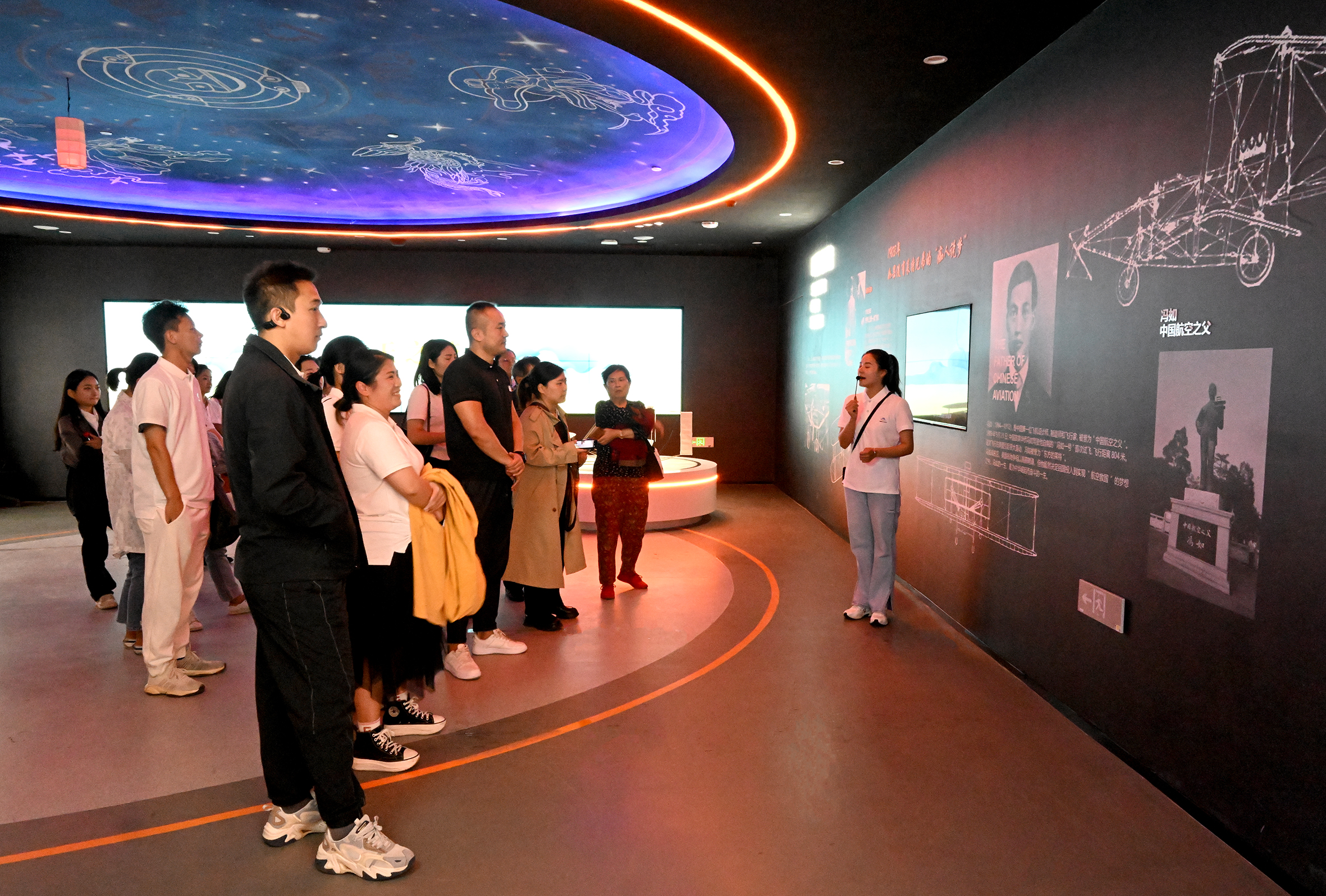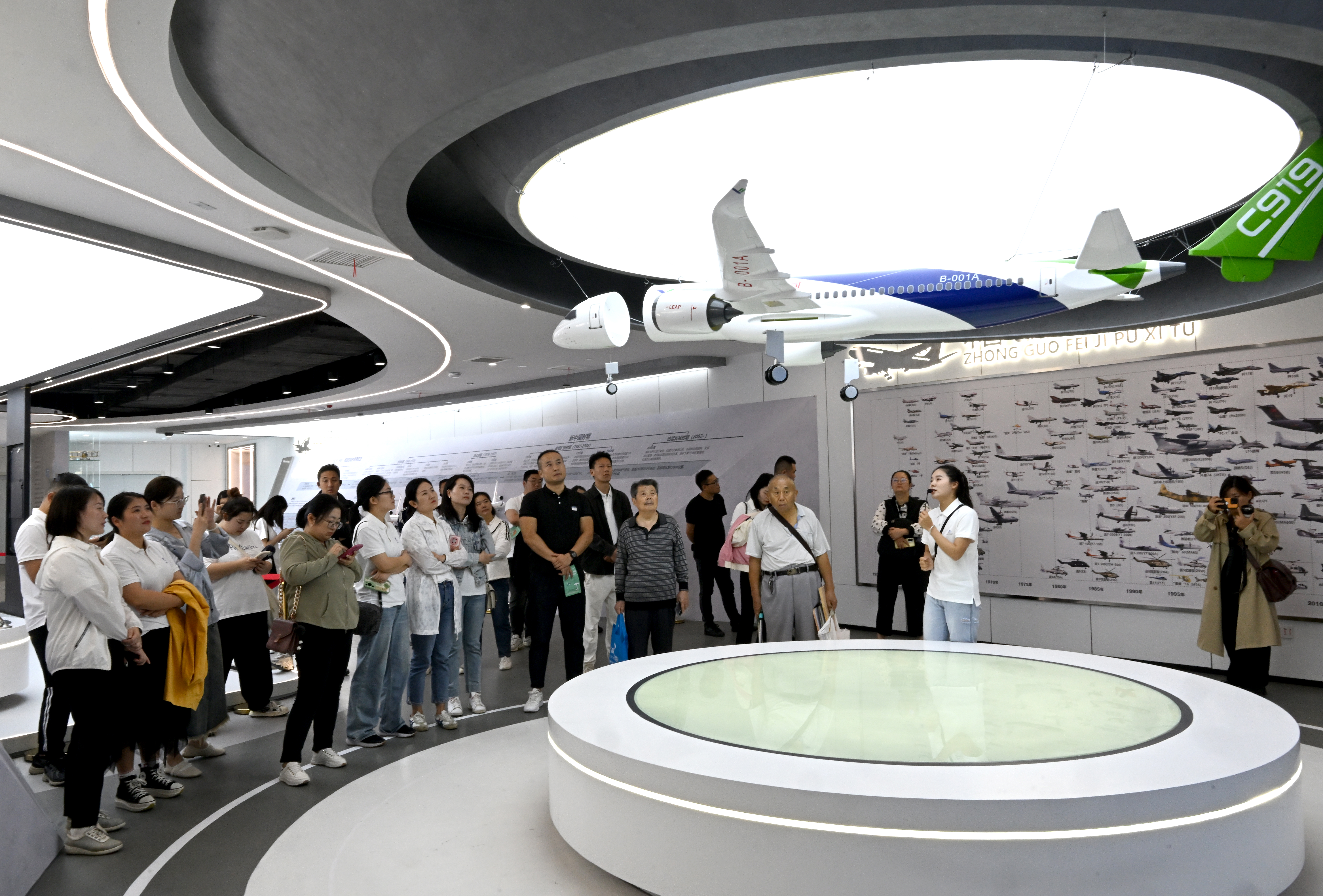 开馆当天,讲解员带领观众首先参观了科普展区,该区分为“千年飞天梦”和“溯源百年航空”两大主题,从“女娲补天”“嫦娥奔月”传说到今天的C919大型飞机,较为全面地展示了中国和世界的航空发展历程。