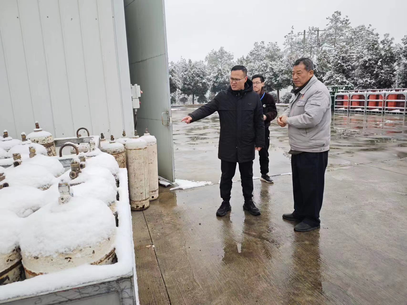 检查中,张强详细询问了企业负责人目前的生产经营情况以及“春节”放假安排,随后检查了危化品仓库、储罐区等重点区域和关键部位,在检查过程中发现企业仓库内违规停放车辆、气瓶违规堆放、值班人员不在岗等安全隐患。