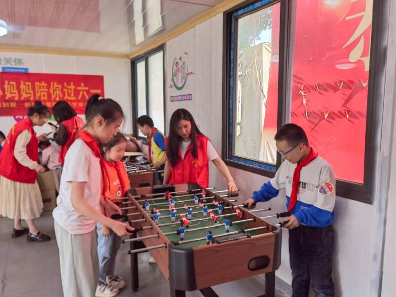 5月29日下午,舒城县千人桥镇新时代文明实践所联合镇妇联到该镇鲍桥村阳光驿站开展“暖心牵手、共护成长”——“爱心妈妈”陪你过“六一”活动。巾帼志愿者、爱心妈妈、留守儿童共二十余人参加活动。