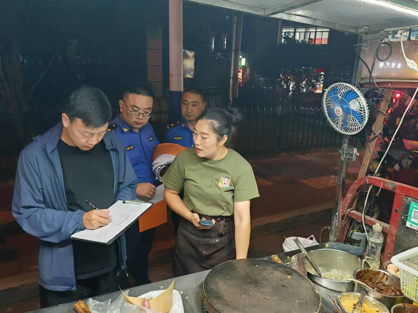 整治过程中,执法队员对各个摊点进行信息登记,对路段流动摊点摊主发放《致摊点经营户的一封信》,并提出规范要求,要求不占道经营,确保不影响市民出行;对于存在油烟污染的摊点引导摊主安装并定期清理油烟净化器、油烟管道等设施,摆摊结束后及时清除周边环境的油渍污垢,对未安装油烟净化设施的摊点进行宣传并要求限期安装;开展行动中,执法队员对未办理健康证或健康证过期的摊主要求尽快前往免费办理,并将健康证免费办理点主动告知,督促摊主按相关要求规范经营。