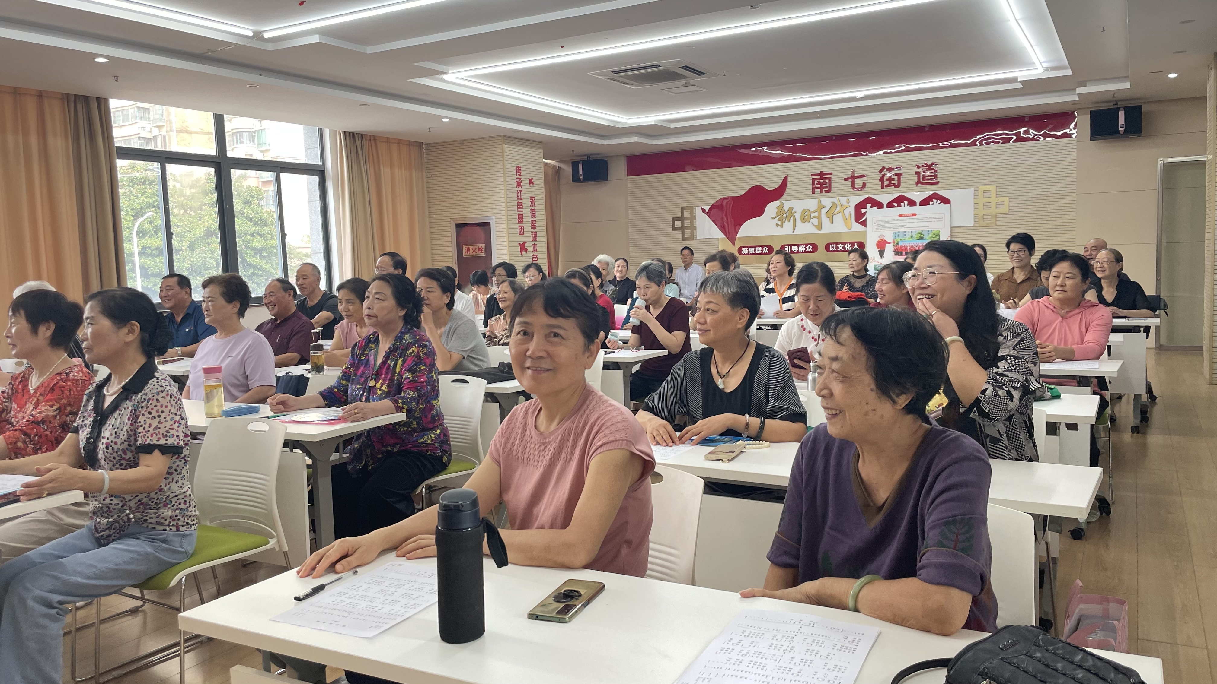 金秋的阳光透过梧桐叶隙,在合肥市蜀山区南七街道老年学校的白墙上投下斑驳的光影。早晨8点半未到,校门口已是人影攒动,一群精神矍铄的老人背着书包、提着水杯,脸上洋溢着孩童般的期待。2025年秋季班在这个九月正式启幕,书法、唱歌、舞蹈三门课程的开设,为辖区老年人开启了一扇通往艺术殿堂的大门。