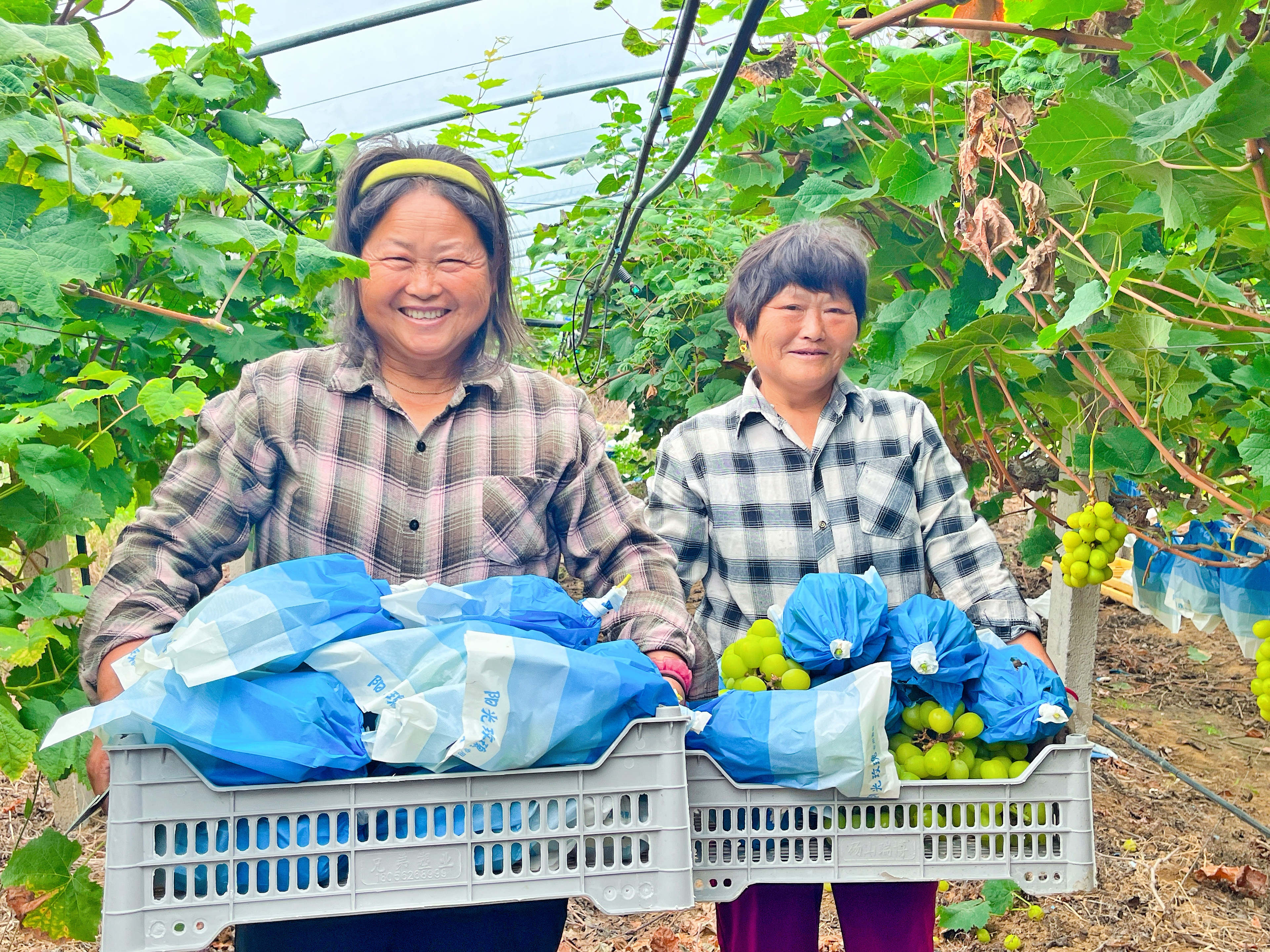 从葡萄的育苗、定植,到日常的修剪、疏果,再到最后的采摘、包装,每一个环节都能为当地村民提供就业机会,白云村浩宇生态种养专业合作社吸纳附近留守妇女、脱贫户等10余位村民在此务工,拓宽了村民增收渠道,“阳光玫瑰”葡萄摇身变成了当地村民的“致富果”。