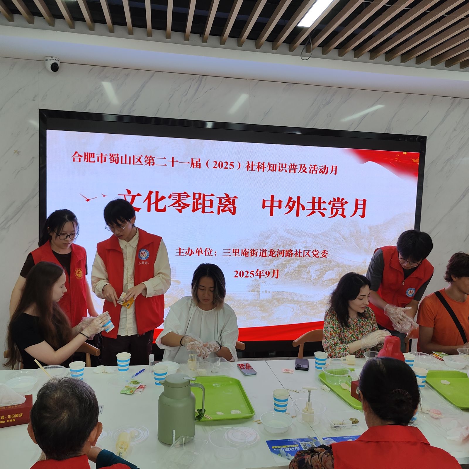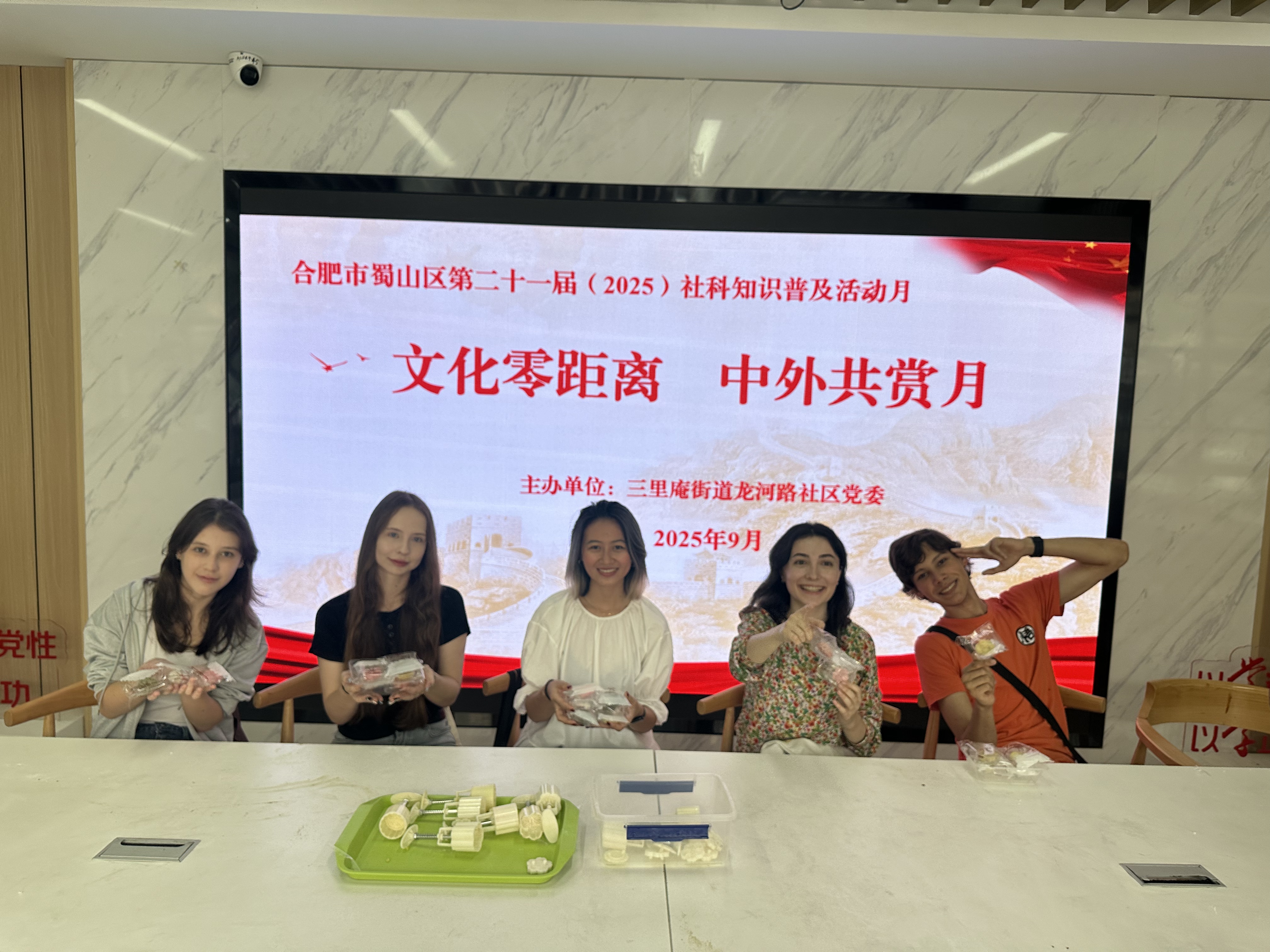 为弘扬中华优秀传统文化,促进中外民间友好交流,丰富蜀山区第二十一届(2025)社科知识普及活动月的内涵,近日,一场别开生面的“文化零距离 中外共赏月”传统文化体验活动在三里庵街道龙河路社区温馨举行。本次活动由蜀山区三里庵街道龙河路社区党委牵头,联合安徽大学国际教育学院、合肥市蜀山区幸福里社会服务发展中心、安徽省社家健康养老产业集团共同举办,邀请社区居民与安徽大学外国留学生一起动手制作月饼,共话中秋团圆意,传递友好情谊。