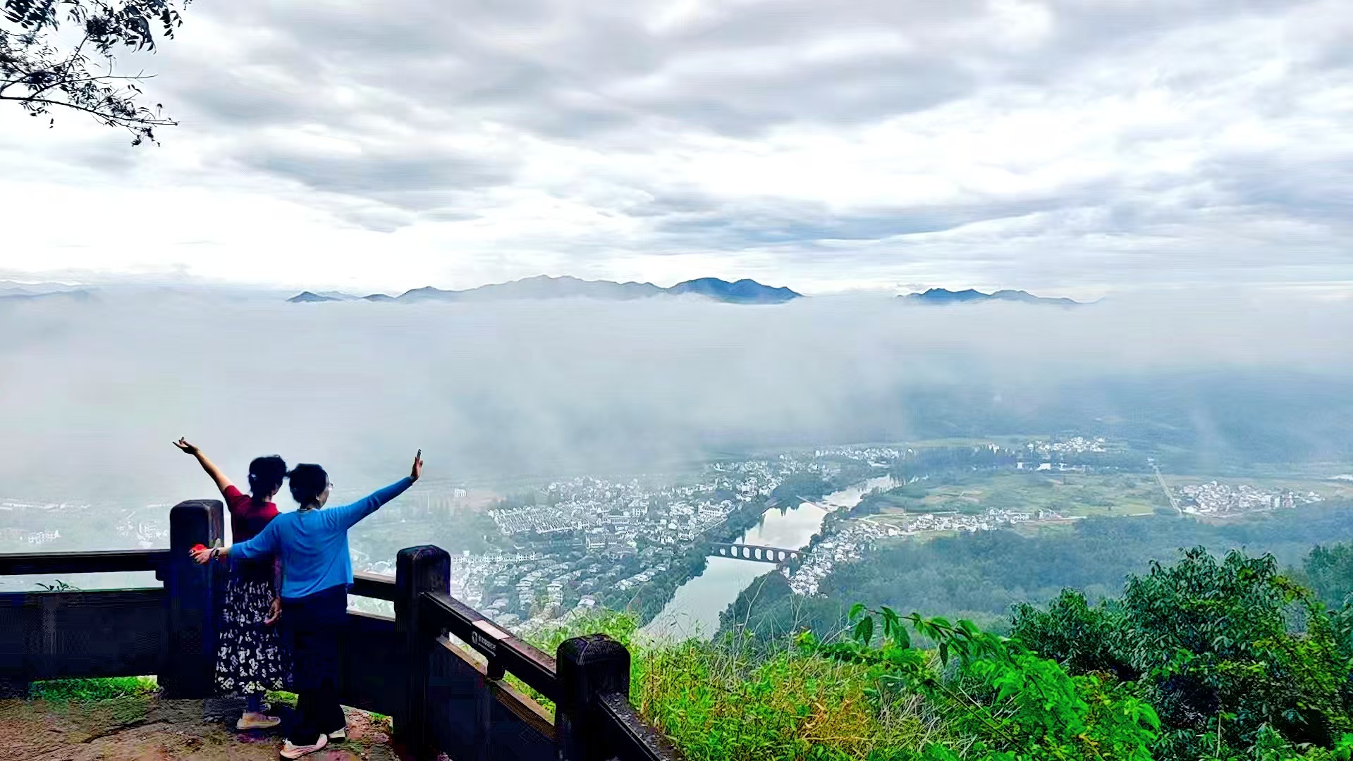 随着暑气逐渐消退,初秋的清风为齐云山披上了一层薄薄的轻纱,这座以丹霞地貌闻名的山岳便宛如一幅流动的山水长卷徐徐展开。当游客登上山顶,眼前云海翻腾,瞬息万变,亲身见证着“齐云”之名所蕴含的浪漫意境。山间的丹霞赤壁尤为壮观,赭红色的砂岩在秋日阳光的映照下,色彩愈发浓烈深沉,展现出大自然鬼斧神工的造化。月华天街如一条丝带悬挂在山间,两侧马头墙的翘角飞檐错落有致,褐色石板铺就的小路蜿蜒曲折,引人入胜。俯瞰山脚,横江如练,清澈的江水倒映着两岸的古朴民居与大片稻田,构成一幅动静相宜、色彩斑斓的乡村水墨画。(陶如)