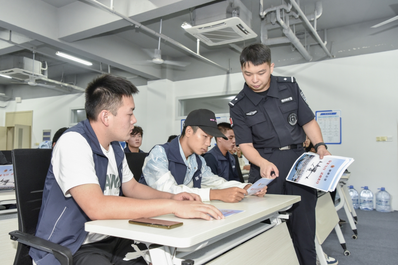 为进一步提升广大群众对《无人驾驶航空器飞行管理暂行条例》的知晓率,9月24日,铜陵市公安局特警支队民警在安徽通航无人机培训铜陵分校向学员讲授无人机安全飞行知识和管理政策法规。(储著传 巨晨寅)