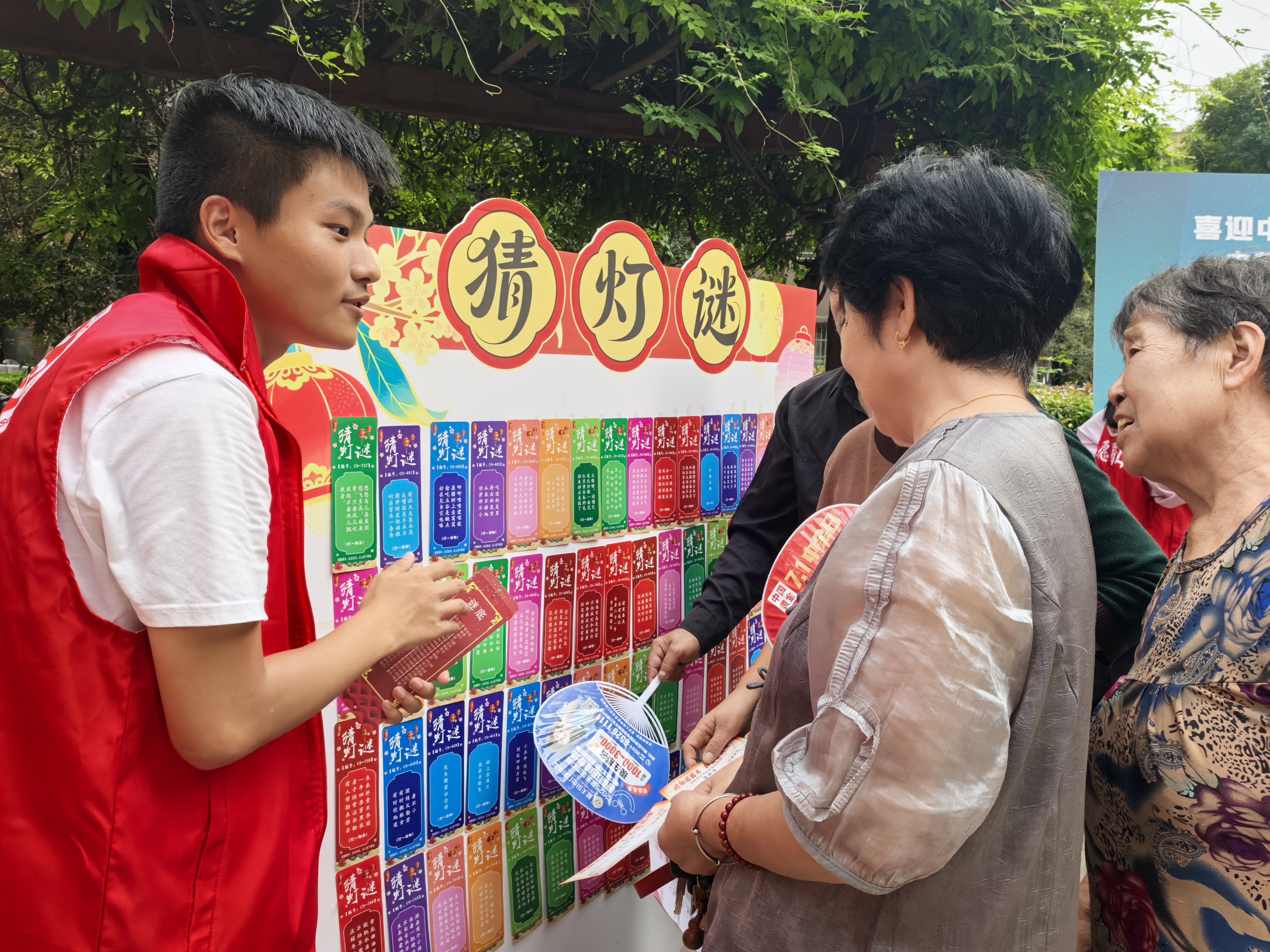 民俗体验区成为游园会的“人气打卡地”。猜灯谜区域悬挂着五彩灯笼和趣味谜语,居民们或凝神思考,或热烈讨论,感受传统文字游戏的魅力;蹴鞠场上,大人和孩子一同体验古代运动的乐趣,欢声笑语不绝于耳;博饼游戏区更是排起长队,激烈的游戏使得居民喝彩声交织,将节日气氛推向高潮。此外,美食月饼品尝区提供了多种口味的月饼,居民在品味甜蜜的同时,分享着中秋团圆的喜悦;香包制作区吸引了许多香料爱好者,大家穿针引线,制作出一个个精巧的香包,寄托祈福安康的美好寓意。