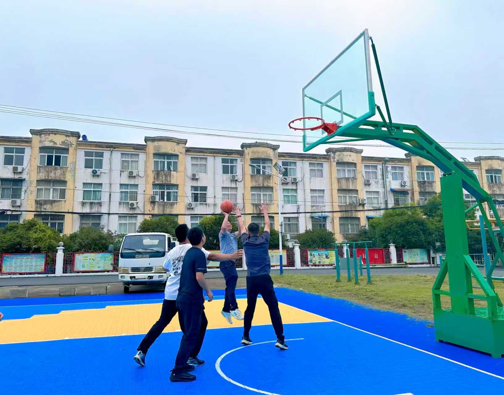 新林社区的篮球场,曾经是居民们运动健身的“老伙伴”,但岁月在其身上留下了斑驳痕迹。平铺镇政府敏锐捕捉到居民的需求,迅速行动起来,将提升场地“外在美”与“内在质”作为改造目标,积极回应群众对高品质生活的期盼。新铺设的地面色彩鲜艳,如同为球场披上了一件绚丽的彩衣,地面采用环保防滑材质,脚感柔软舒适,即便在雨天,也能快速恢复干燥,让居民们不再受天气和场地条件的限制。