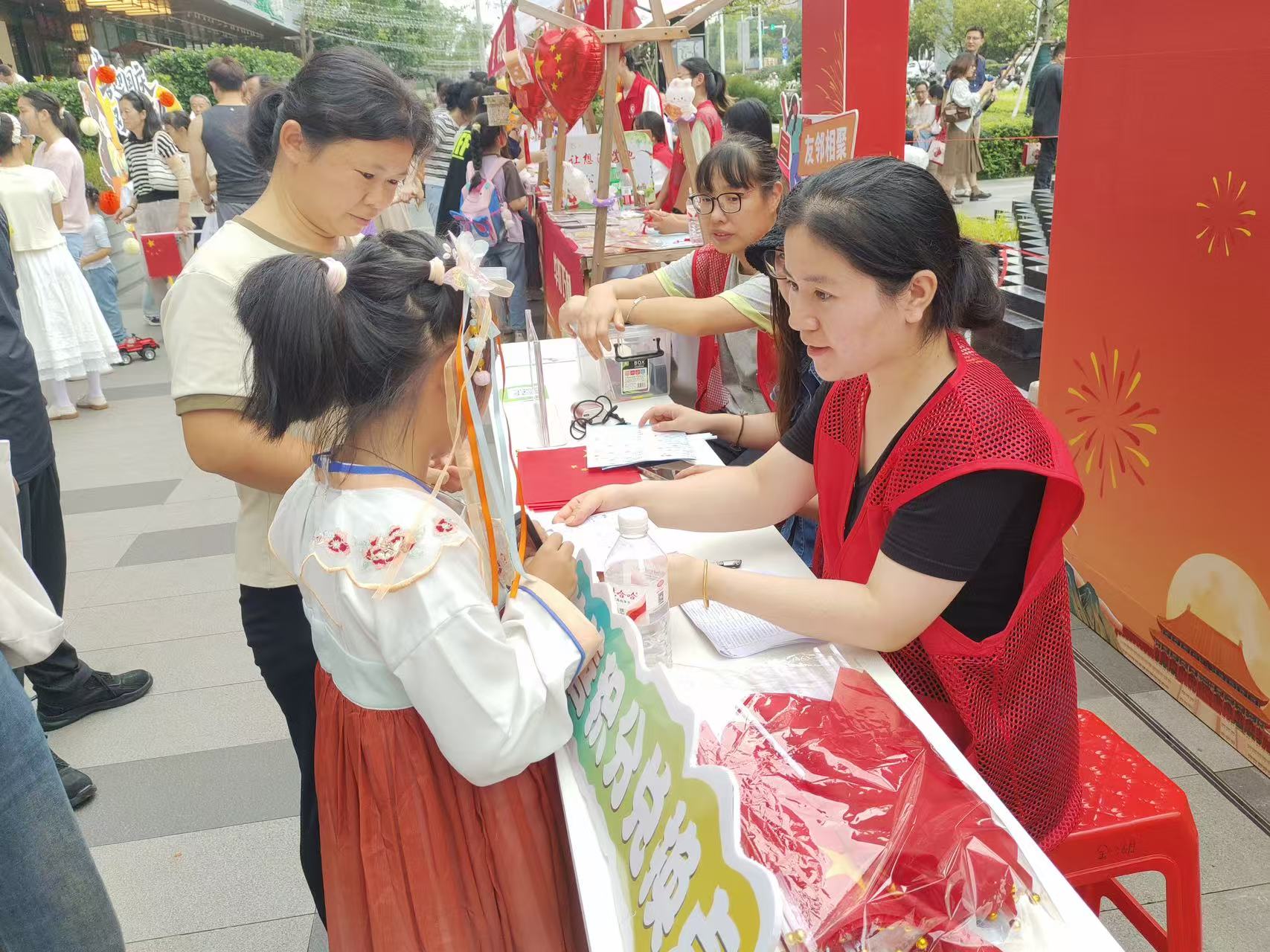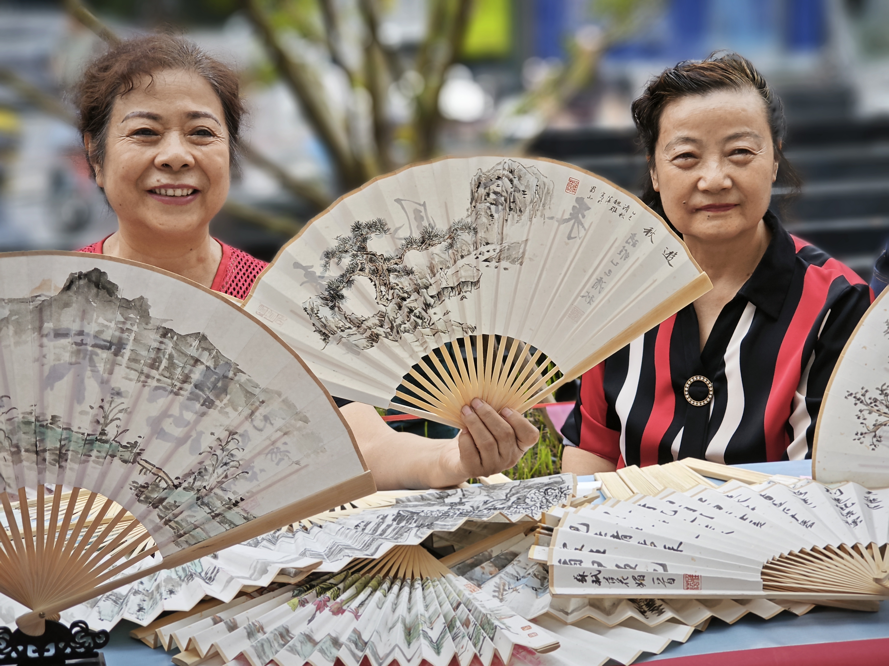 与此同时,活动现场还特设的慈善市集提供中医义诊、非遗体验、书画作品、灯笼手作、月饼制作等多样化服务,纸上风月市集小车是由侨胞侨眷组织安排,纸扇上一幅幅画作将山水之美表现得淋漓尽致,意境深远,得到了居民的欢迎认可和争相购买。“我们上了年纪,就喜欢中国传统文化,这些老师水平很高,手绘的纸扇既好看又实用,买回去放家里、外出打卡拍照片都很不错。”张阿姨说到。