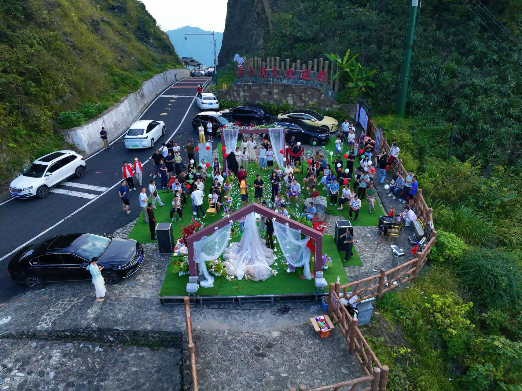 “我们一直向往一种与众不同、回归自然的婚礼形式。”新郎激动地表示,“作为一名现役军人,我更理解坚守与承诺的意义。璜尖是我从小长大的地方,这里纯净、秀美,远离尘嚣。在这里举行婚礼,意味着我们的爱情像高山一样坚定,像云海一样绵长。”