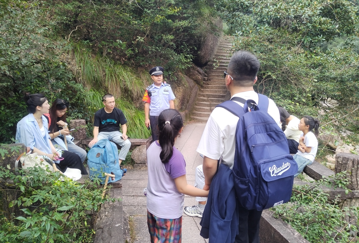 10月3日下午4时许,房保林正在三溪口沿线巡逻,为此线下山游客提供线路指引。这条路约5公里山路,蜿蜒起伏,全是上坡路。