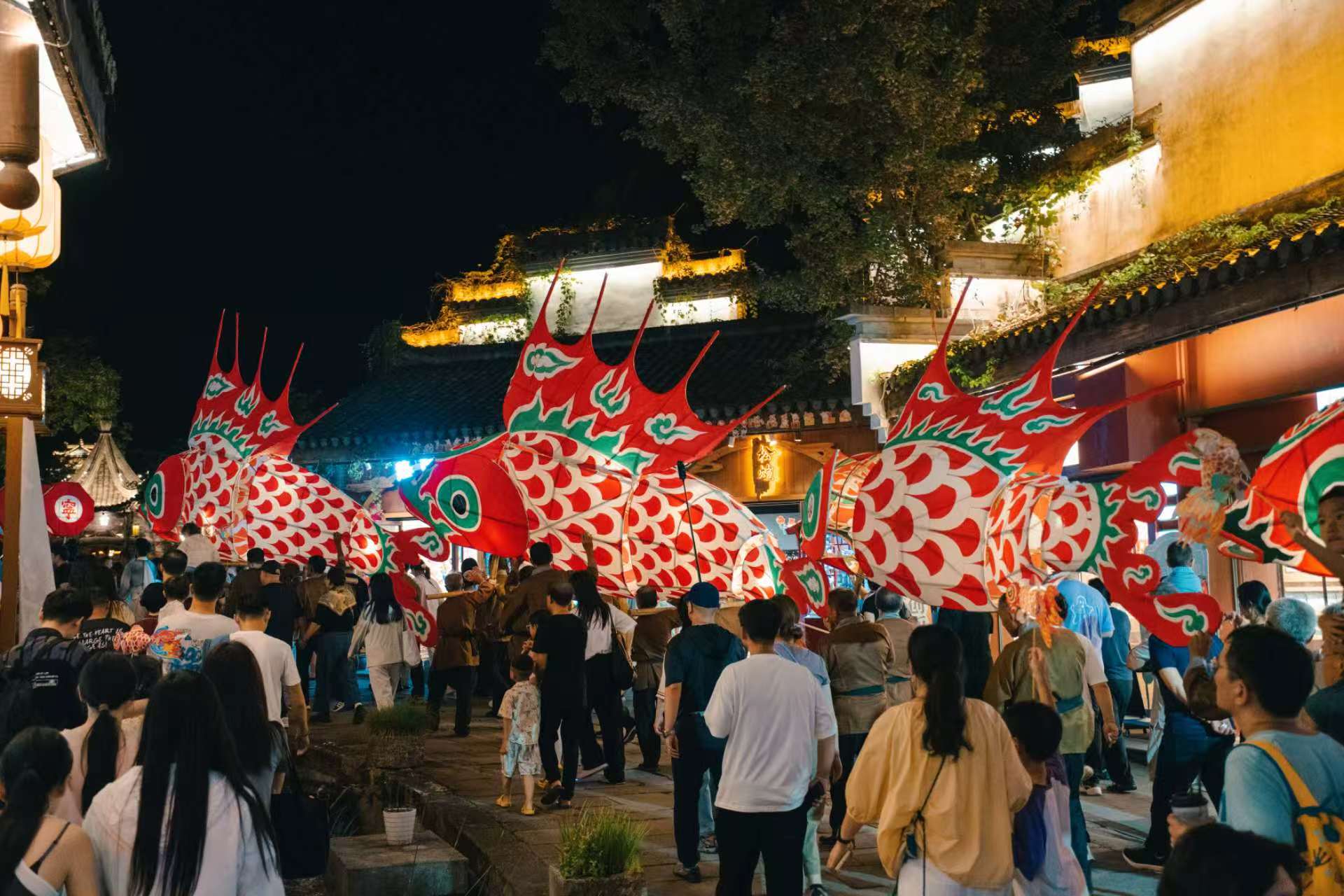 夜幕降临,“白岳幻音节”上,专业的RAP说唱歌手一句“从武当躁到皖齐云”,瞬间如一颗火种,燃爆了全场。夜间巡游的6米大型鱼灯,更是将徽州非物质文化遗产的独特魅力展现得淋漓尽致。同时,齐云山生态文化旅游度假区在福海区域及游客中心广场等地,有序组织齐云打铁花、隆回炭花舞、白岳烟花秀、非遗喷火抖火壶等“火系”演艺,为游客呈现传统技艺与现代审美碰撞出的视觉盛宴。