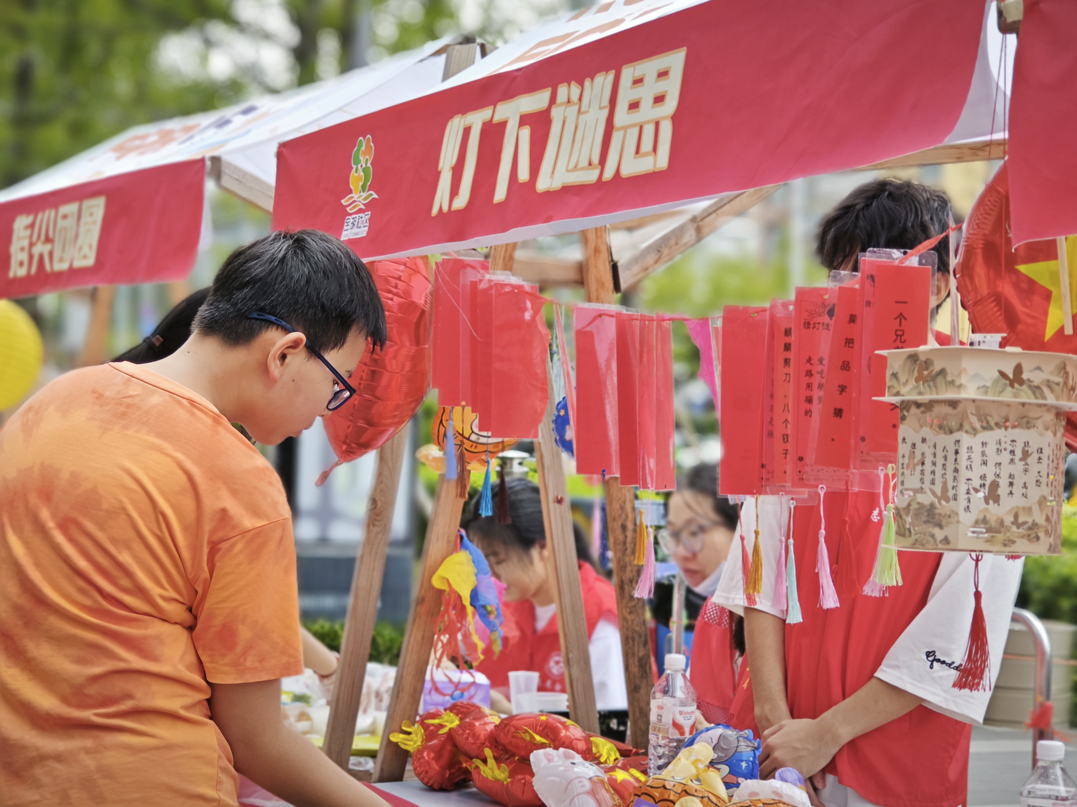 活动现场分设三大体验区,气氛热烈,居民参与踊跃。巧手制灯笼摊位前,志愿者们耐心指导孩子们制作造型可爱的兔子灯笼和典雅的古风灯笼,小朋友们手捧作品,脸上写满成就与喜悦;冰皮月饼制作区香气四溢,志愿者们备好冰皮预拌粉、豆沙、莲蓉等多样馅料与精美模具,随后戴上手套,熟练地揉面、包馅、压模,将一份份亲手制作的月饼分发给居民。猜灯谜区域悬挂着各式灯笼,谜题内容涵盖中秋传统文化、国庆知识及趣味谜语,居民们或独自思考,或相互讨论,猜中者领取月球灯等小礼品。傍晚时分,活动接近尾声,居民们手提亲手制作的灯笼和月饼,手中轻轻挥舞着鲜艳的小国旗,脸上洋溢着幸福与满足的笑容。商业街逐渐恢复平静,但节日带来的温暖氛围仍在延续。