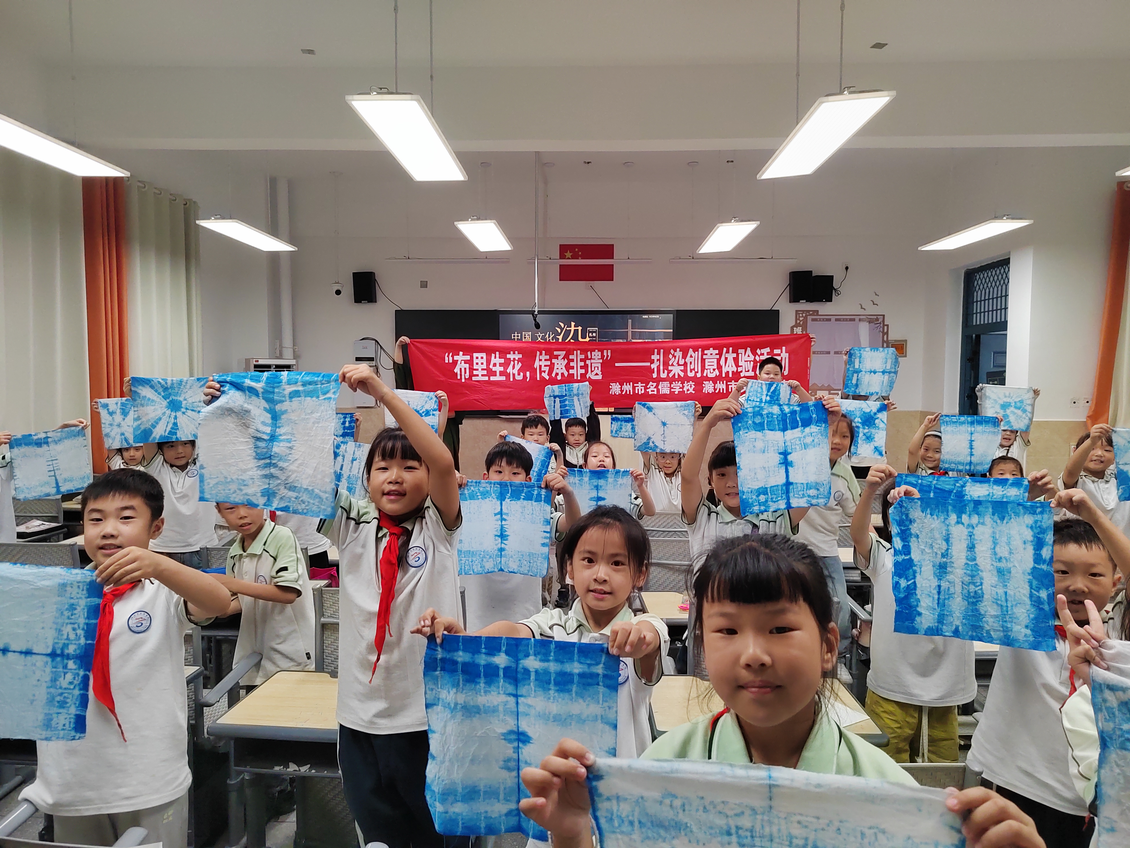 班级老师表示:“扎染活动把非遗课堂搬进了校园,既锻炼了孩子们的动手能力,更让他们在创作中读懂了传统文化的魅力。”非遗进校园,薪火永相传。滁州文博书苑联合名儒学校通过此类活动,让古老工艺在孩子们心中种下传承的种子,让传统文化在实践体验中焕发新生机。