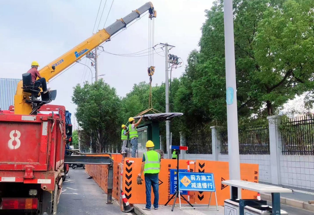 今年国庆、中秋假期,在合肥市天门路(锦绣大道-紫蓬路)段,趁着节日期间客流量较少,该区公用事业公司组织市政工人加紧施工。根据建设方案,施工单位对3处点位实施基础硬化处理,埋设钢结构基础,然后将成品公交站亭设施吊运安装到位。