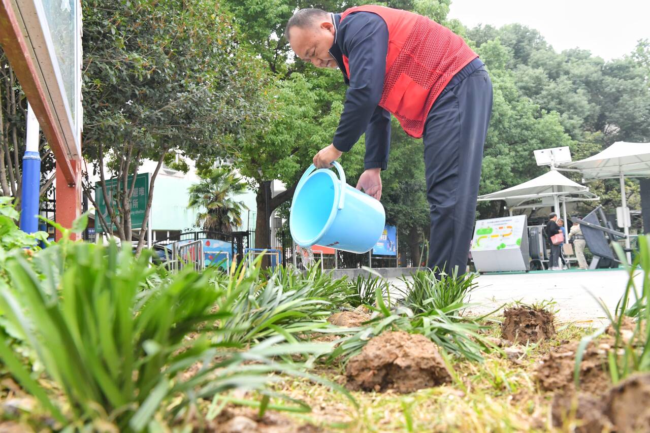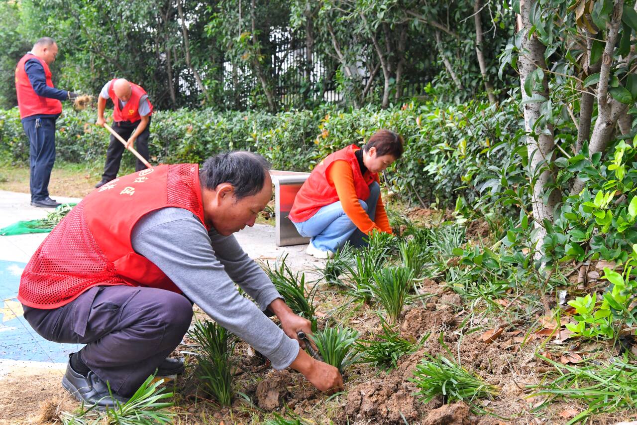 “冬麦根系浅,土埋浅点,间距留10厘米,不然长不开。”有着绿化工作经验的志愿者吴开栋蹲在地上,给同事示范栽种步骤:铁锹挖浅坑、放幼苗、手拢根部土。其他几名志愿者跟着学,很快便完成了一处地块的绿化补植。而在另一边,志愿者周宏辉拿起绿篱剪仔细剪掉枯黄枝叶,遇到高枝就踮脚慢修,用心提升广场绿化品质。