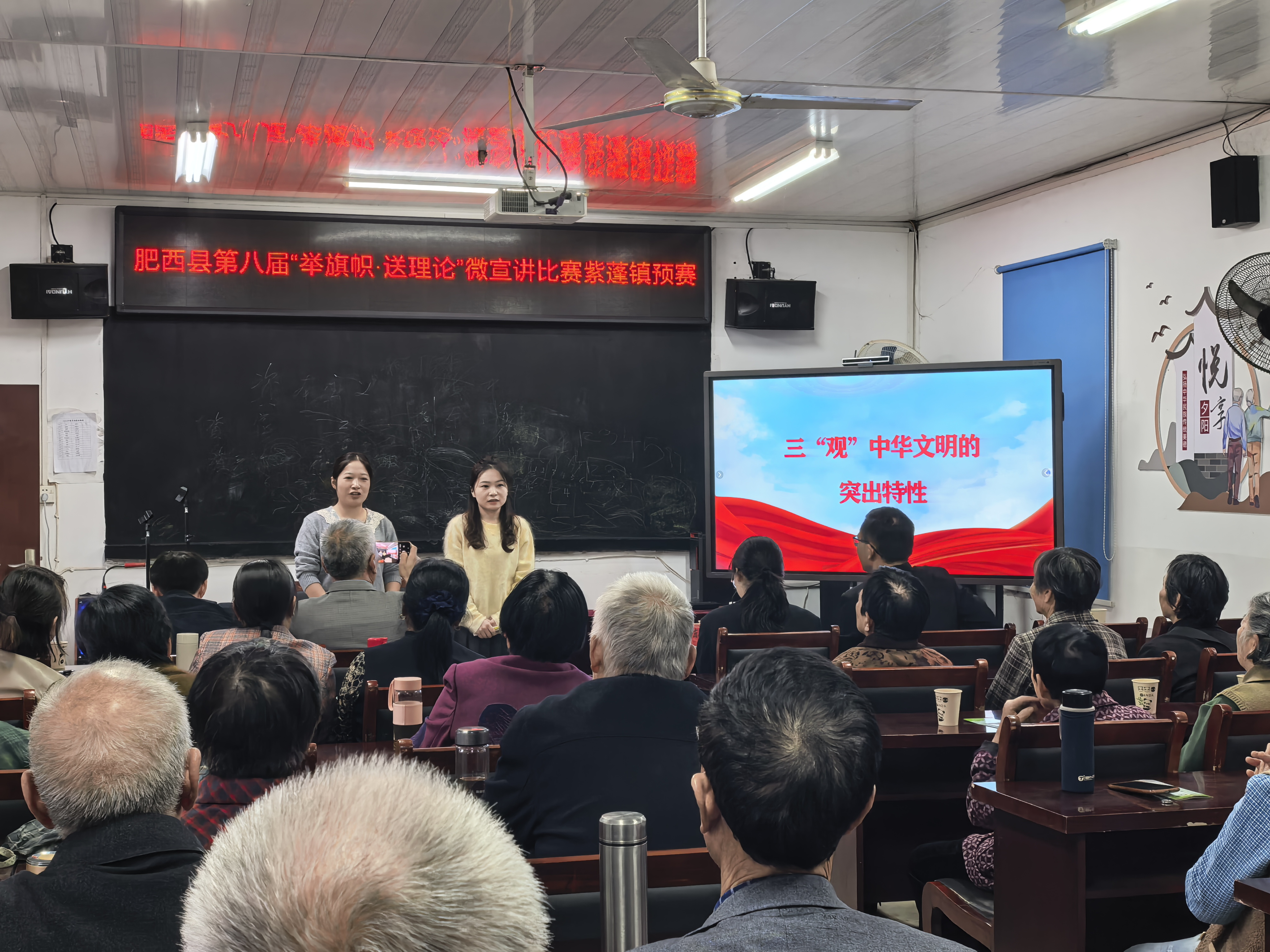 10月15日,肥西县第八届“举旗帜·送理论”微宣讲比赛紫蓬镇选拔赛在当地老年学校举行,来自徽商职业学院的5名宣讲人同台竞技,以高度热情和鲜活案例,对党的创新理论进行了深刻动人的阐释。