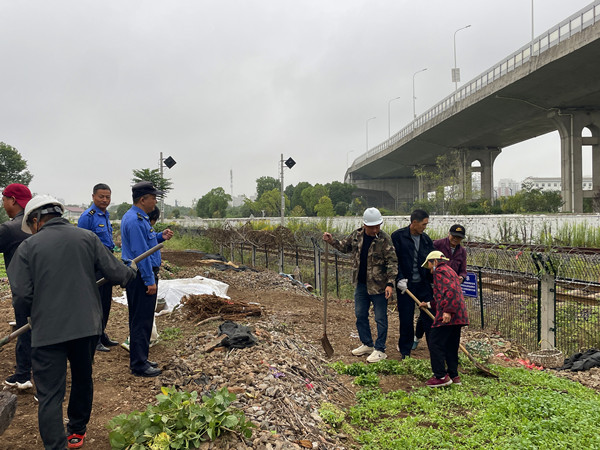 二是铲菜拆违,守护公共空间。城管中队组织精干力量,对园丁二区高铁沿线和保兴港小区居民私自“毁绿种菜”进行了彻底清理,恢复公共绿地的本来面貌。并对保兴港小区北侧围墙间违规搭建进行了依法拆除,消除安全隐患,维护了小区环境的公平与秩序。此外,街道还在望江苑小区同步开展文明养犬宣传活动,引导居民文明养犬。