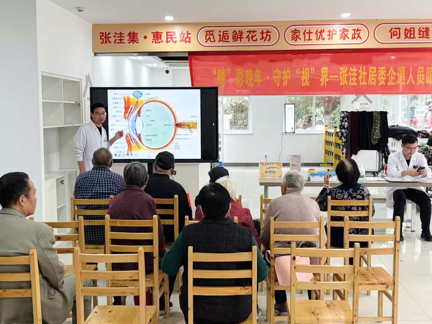 为切实提高辖区企退人员和老年朋友们的眼健康意识,普及科学用眼知识,10月17日上午,合肥新站高新区七里塘社区企退服务中心联合张洼社居委、社彩社会工作服务中心以及安徽省第二人民医院,在张洼社居委一楼便民服务点共同举办了一场关爱眼部健康讲座与免费义诊活动。四方协同合作,将优质的医疗服务与贴心的关怀送到了居民“家门口”。
