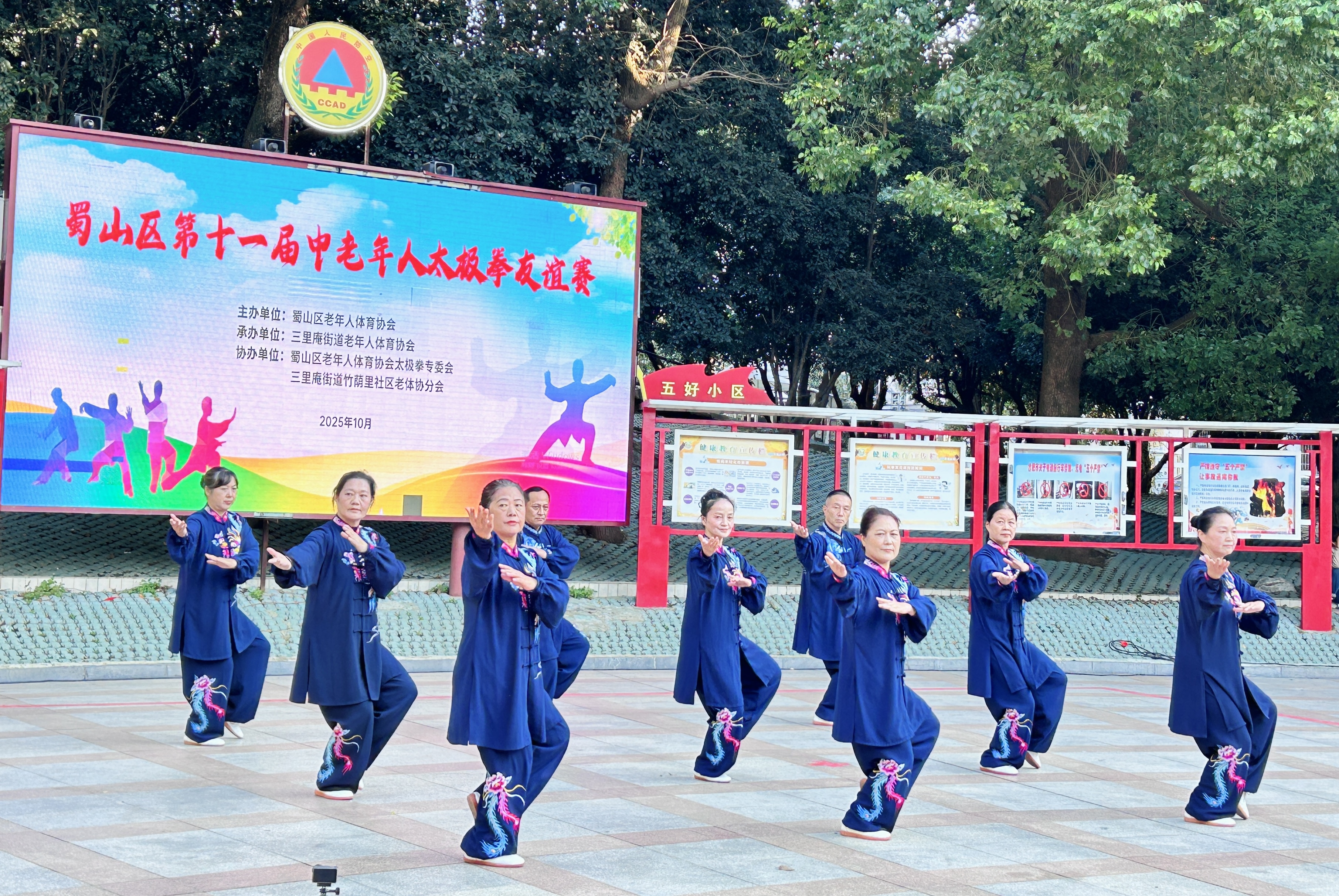 10月23日,合肥市蜀山区第十一届中老年人太极拳友谊赛在三里庵街道竹荫里社区志愿者广场成功举办。11支镇街、开发区队伍以拳会友,献上了一场融合养生智慧与文化底蕴的体育盛宴。