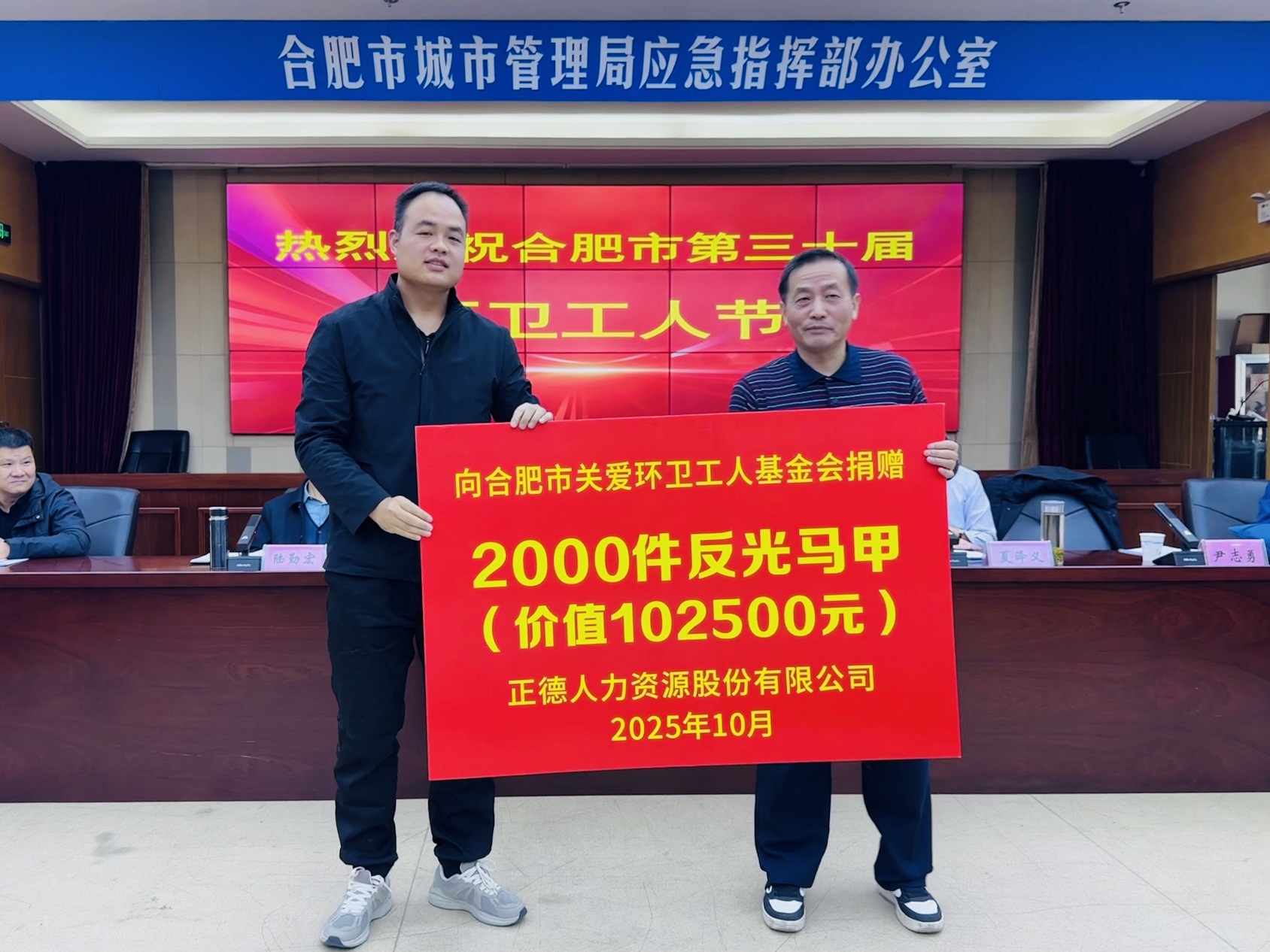 今年10月26日是合肥市第三十届环卫工人节。10月24日下午,合肥市城管局组织优秀一线环卫工人代表召开庆祝环卫工人节座谈会。会上表彰了“2025年度合肥市环卫事业贡献优秀单位”,爱心企业向合肥市关爱环卫工人基金会捐赠了2000件价值10.25万元的反光马甲,用于环卫工人作业时的安全防护。