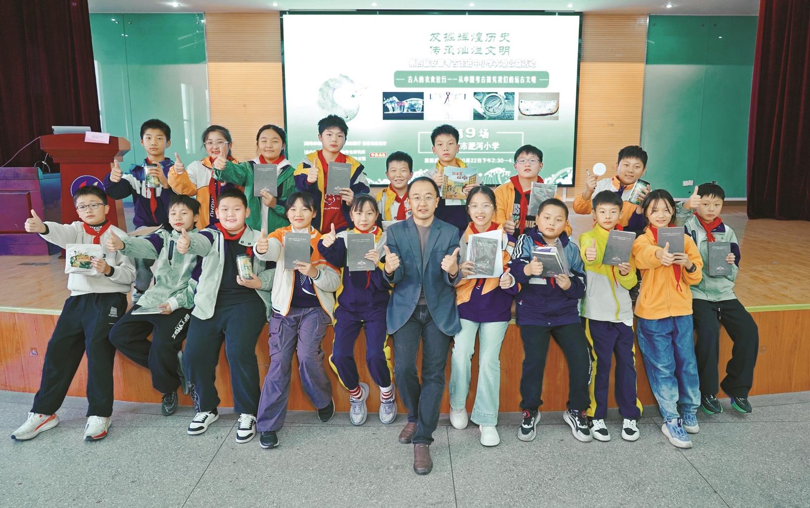 合肥市淝河小学副校长陆晓峰表示,感谢“安徽考古走进中小学”活动将精彩的考古故事带进校园,让古老的文明在孩子们的心中焕发新生。“希望通过今天的活动,让同学们学会用好奇的眼光去观察世界,用严谨的态度去探寻真相。也许未来有一天,站在考古发掘现场的正是今天认真听讲的你们。”(安徽商报 元新闻记者 刘媛媛 王素英 武鹏 周梅 任逸玮 杨雪娇 文/摄)