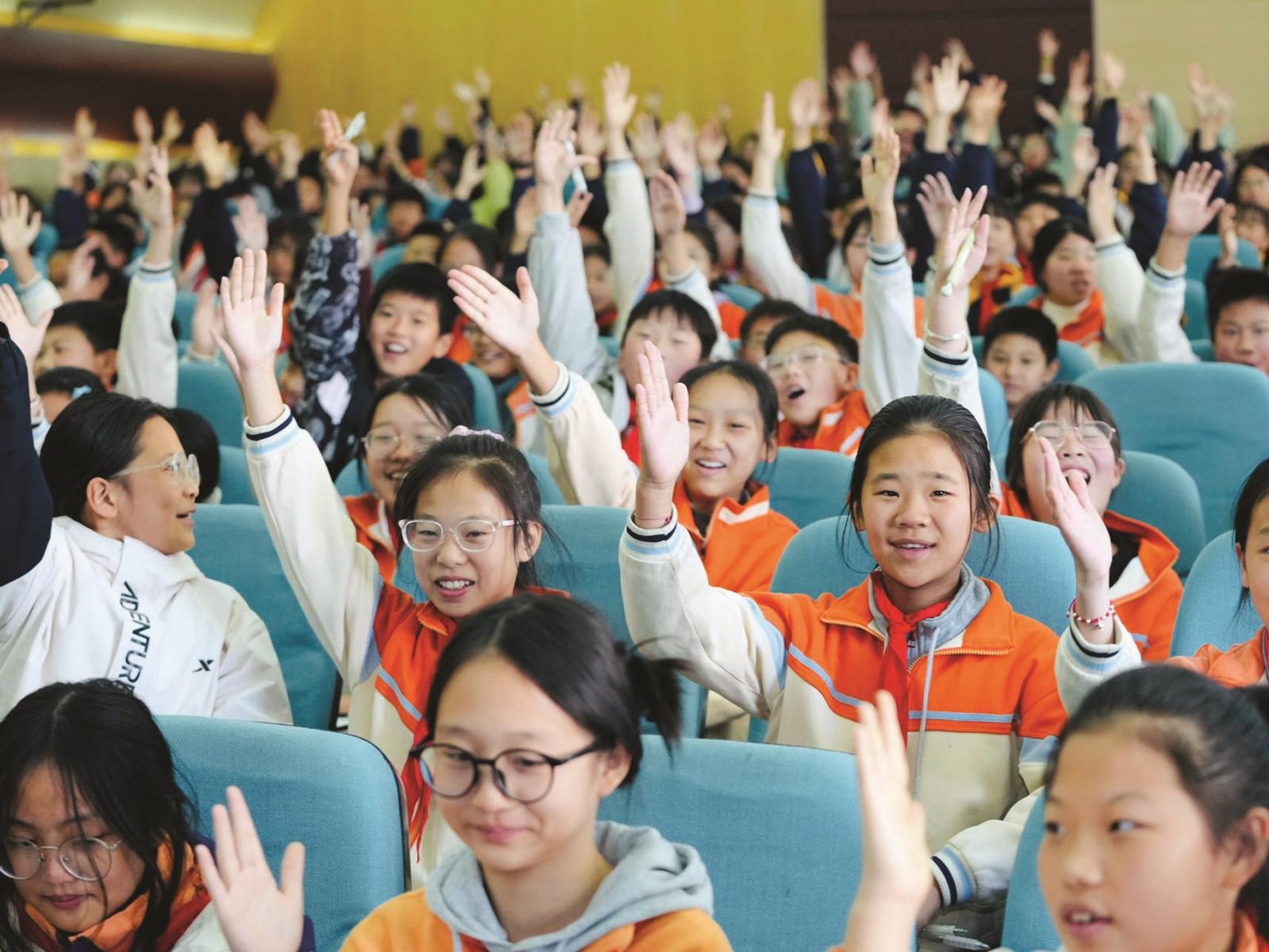 六(1)班的冯楚珊觉得当天的讲座非常有趣。“通过秦老师的讲述,我觉得自己好像穿越了时空,看到了古人真实的生活场景。”“我希望长大了也有机会保护这些珍贵文物和遗址,传承好中华优秀传统文化。”六(3)班的兰雅欣对秦老师分享中提到的安徽的珍贵文物和遗址非常感兴趣。“很多遗址我还没有去过,希望有机会能去现场看看。”