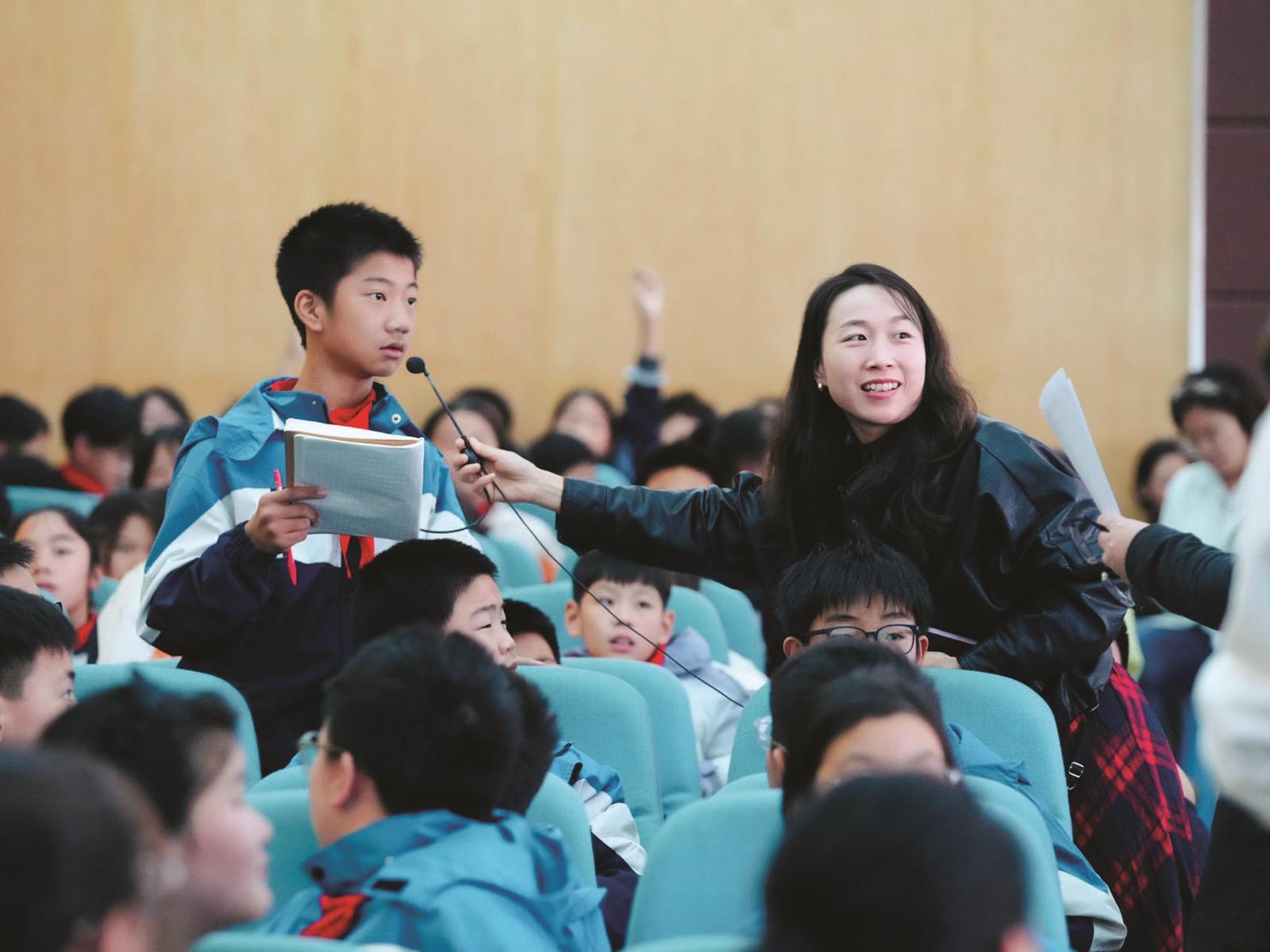 一个多小时的分享在同学们热烈的掌声中结束。互动环节,报告厅里气氛火爆,同学们积极举手抢答。活动结束后,孩子们围着秦老师久久不愿离开。“秦老师,给我签个名!”拿着小本子的同学们排起了长队。