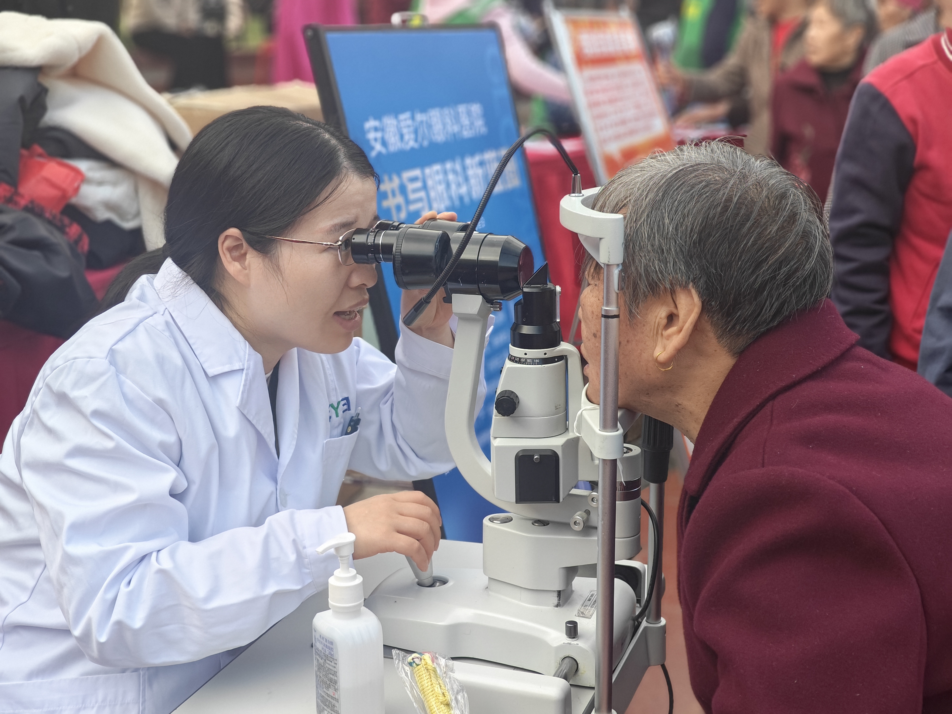 活动当天,闻讯而来的居民,尤其是老年朋友们早早来到现场,在社区工作人员的有序引导下依次排队等候。安徽爱尔眼科医院的医护人员们耐心专业,为居民们提供了包括视力测试、电脑验光、眼底疾病检查及白内障筛查等多个项目在内的系统检查。