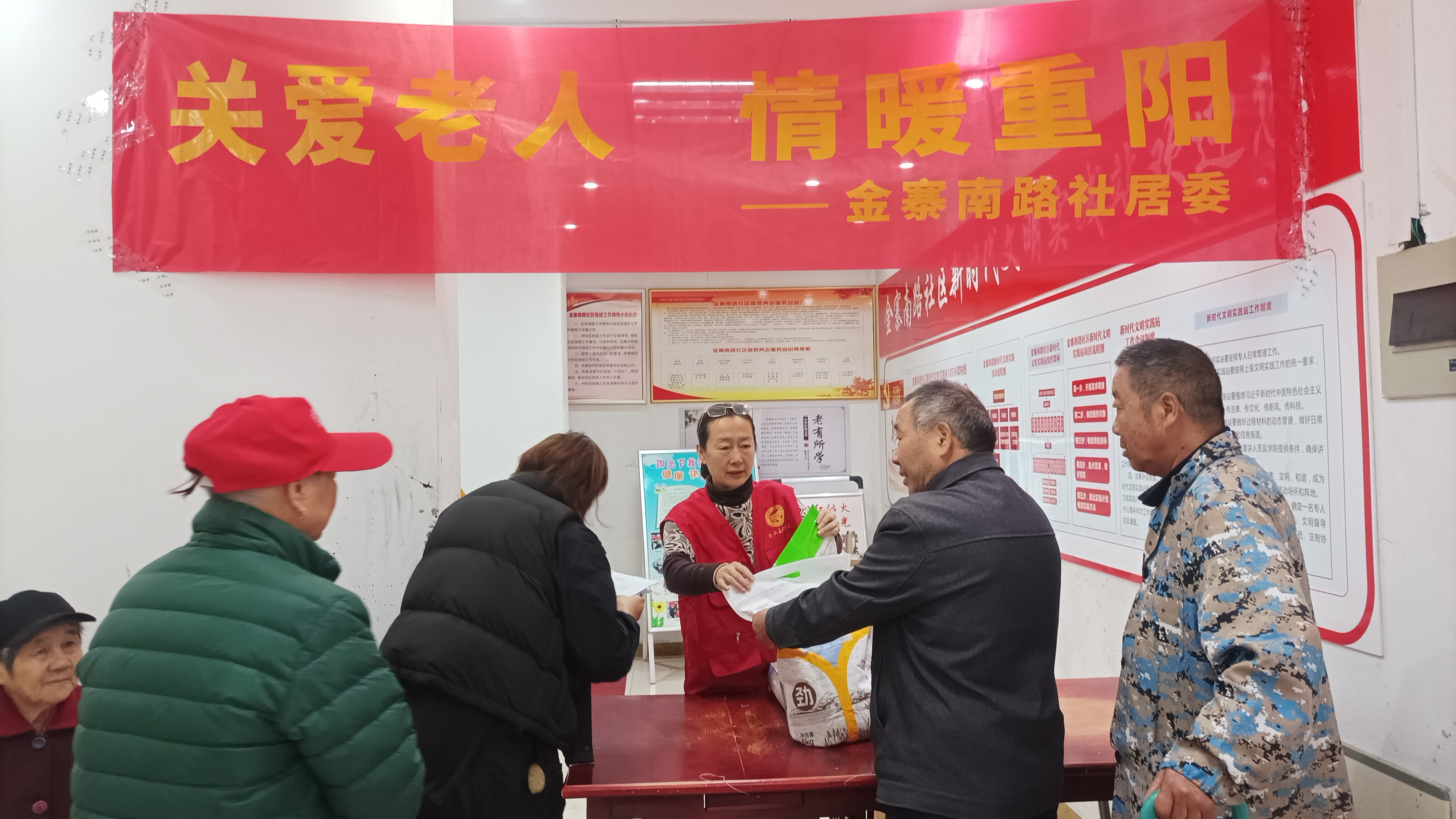 金秋送爽,丹桂飘香。在一年一度的重阳佳节来临之际,为弘扬中华民族尊老、敬老、爱老、助老的传统美德,营造和谐温馨的社区氛围,10月26日,金寨南路社区妇联、关工委、居家养老服务站、退役军人服务站组织开展了“情暖重阳”主题慰问活动,为辖区内的高龄老人、困难退役军人及家属及独居老人送上节日的祝福与关怀。
