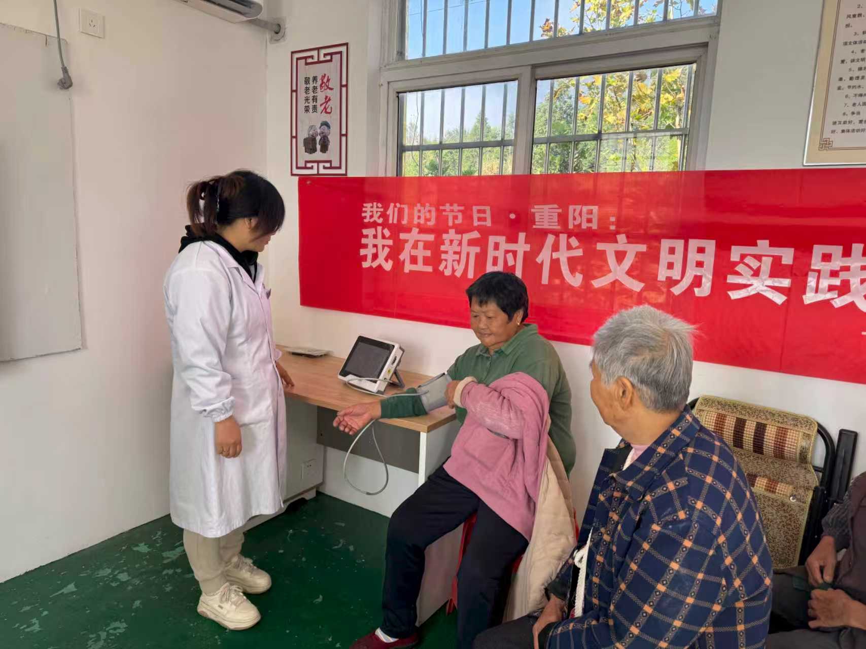活动现场,镇、村志愿服务者和医务志愿者们早早将备好的血压仪,耐心地为每一位前来的老人测量血压,细致询问他们的日常饮食、用药情况,并针对高血压、关节炎等老年常见疾病,给出科学的健康建议,让老人们在家门口就能享受到专业的医疗志愿服务,把健康守护真正送到村民心坎上。在活动的另一处,邮政银行志愿者们带来的有奖竞答环节将活动现场气氛推向高潮,竞答围绕养老政策、金融防诈骗、重阳节习俗等知识设计题目,老人们纷纷举手抢答,答对的老人接过实用的小礼品,脸上洋溢着开心的笑容。这场互动不仅让老人们不出村就能学到了一些常见防范知识,同时又让老人们感受到了节日的温暖,体会到党和政府的关心与关爱,更让幸福院内充满了幸福的欢乐笑声。