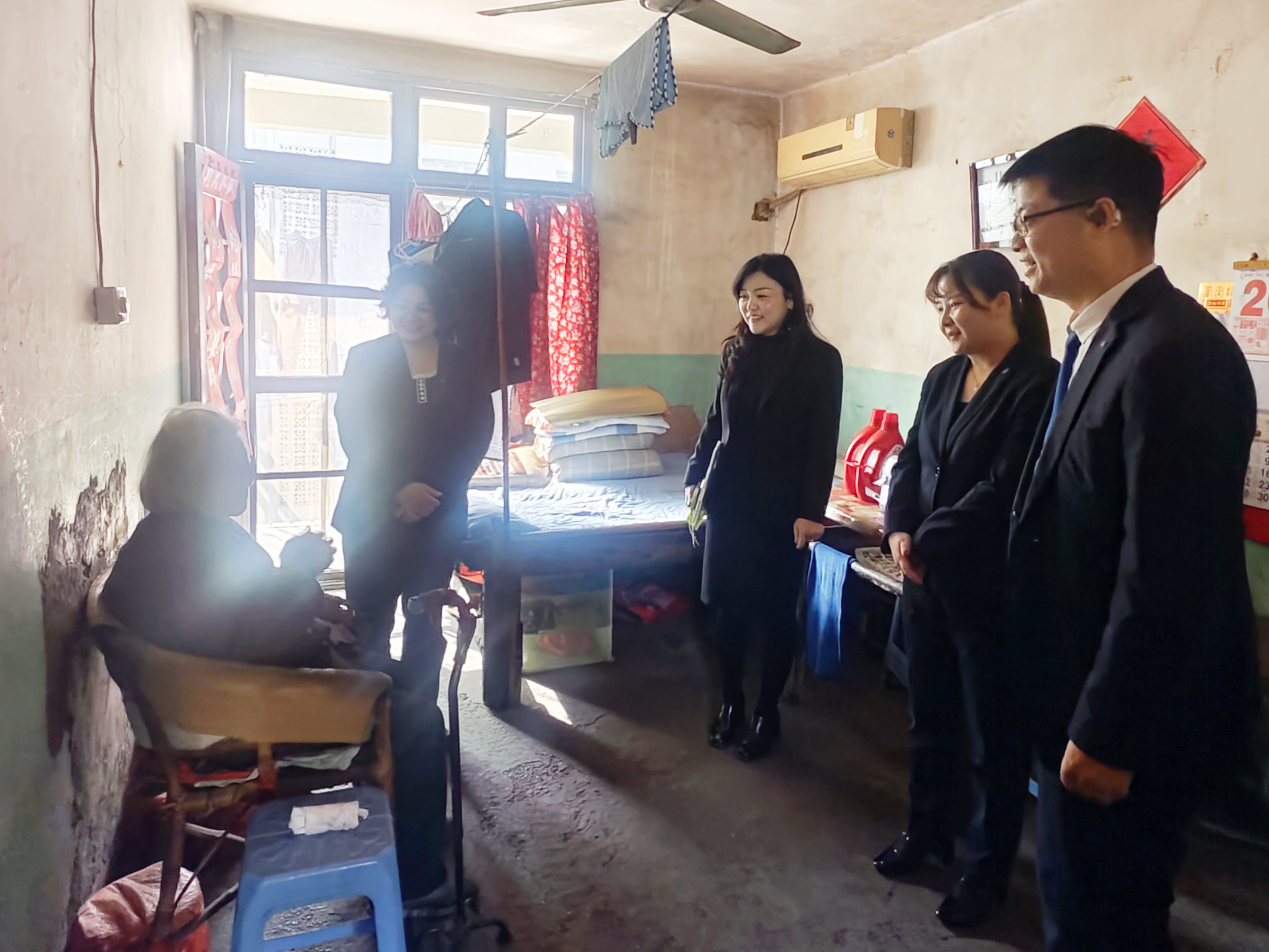 活动中,爱心企业代表与社工站工作人员一同走访了辖区内的几户困难老人家庭,为他们送去了大米、食用油以及精心准备的生活日用品。每到一户,他们都与老人们亲切交谈,详细询问他们的身体状况和生活情况,叮嘱他们注意保暖、保重身体,并致以节日的真挚问候与美好祝福。