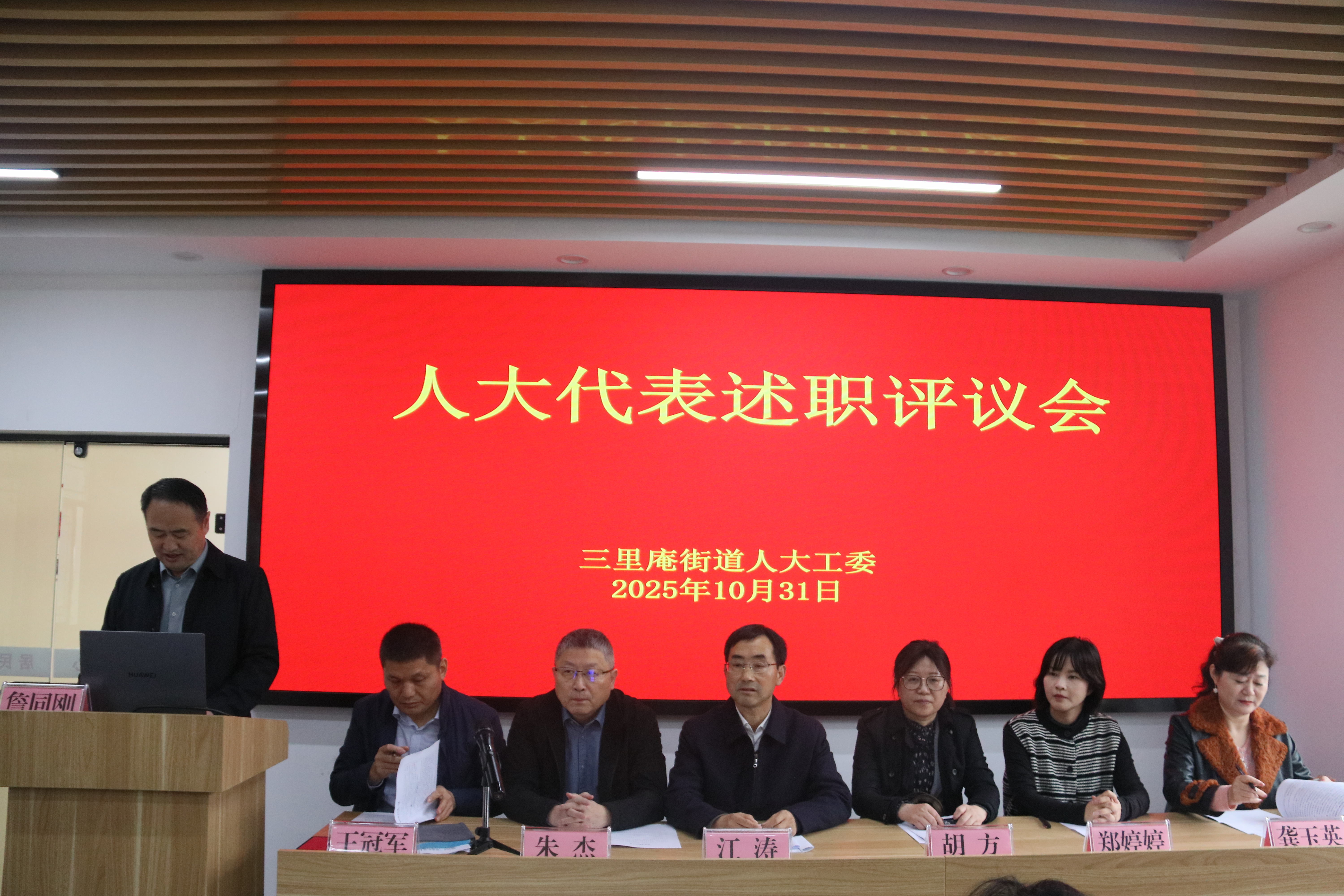10月31日上午,合肥市蜀山区三里庵街道人大工委在竹荫里社区组织召开人大代表述职评议工作会议。会议由街道人大工委主任詹同刚主持,街道人大代表团全体代表、区住建局和信访局相关领导、社区“两委”干部及选民群众代表等50余人参加。