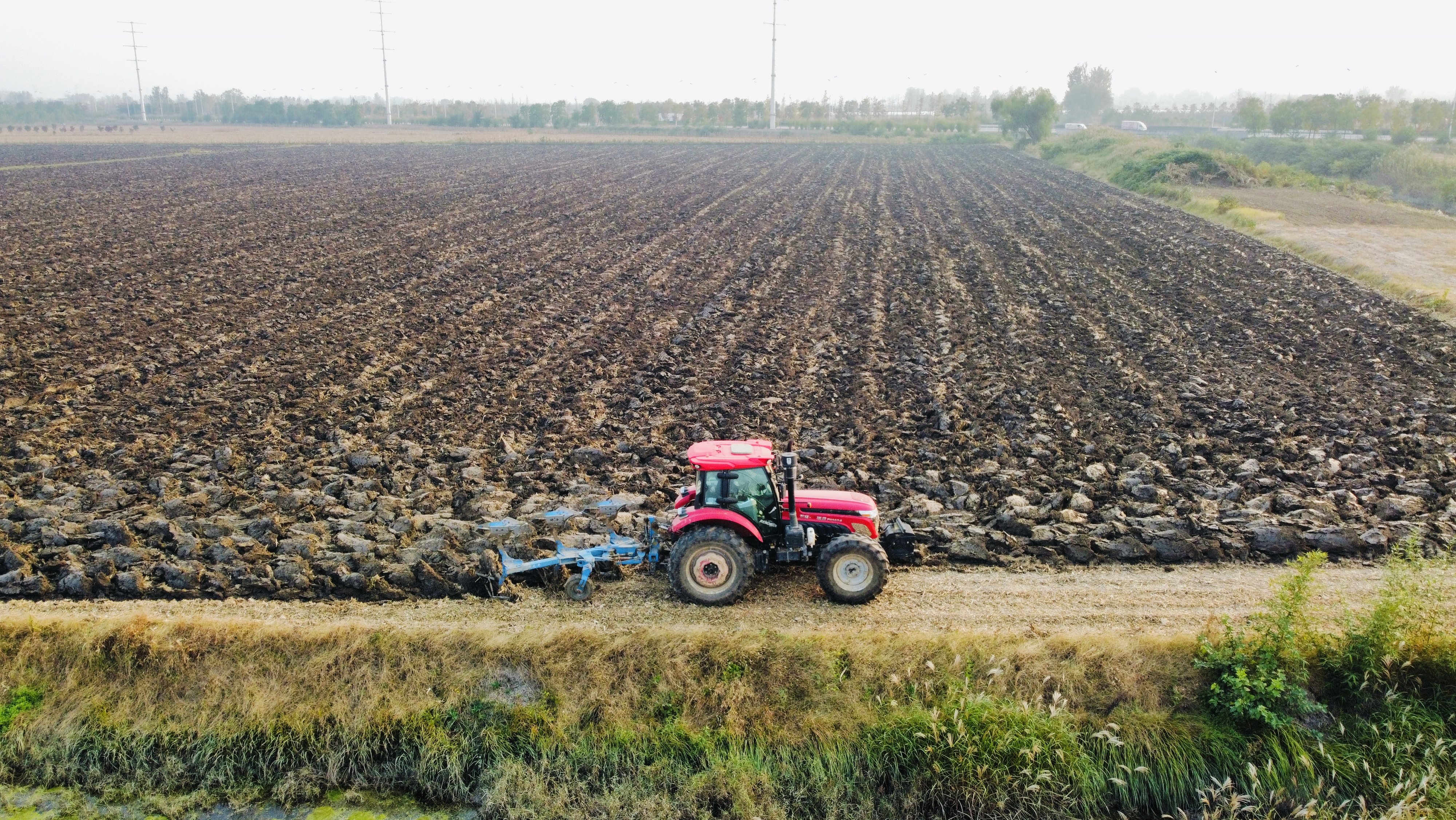 10月30日,宿州市埇桥区西二铺镇葛林村种粮大户雷修春正在使用大型拖拉机深翻土地准备秋种,1300亩秋种小麦,计划一星期完成任务。