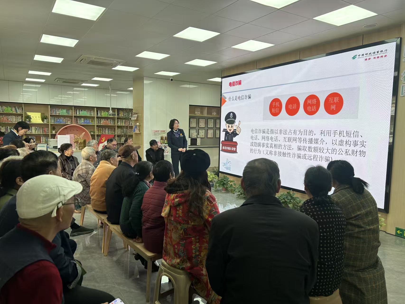 本次讲座特邀枣园邮政储蓄银行金融安全专员授课,内容直击居民最关心的金融诈骗风险。开场3分钟的本地真实诈骗案例短视频,让在场居民直观感受到“养老投资骗局”“虚假理财陷阱”的危害,迅速聚焦注意力。随后,结合近期高发案件,拆解“冒充电商客服套验证码”“画高收益饼诱骗投资”等6类诈骗套路,用“虚假APP界面截图”“诈骗话术模板”还原骗子手段,总结出“三不一要”(不轻信、不透露、不转账,遇疑报警)的防骗口诀,让居民轻松掌握识别要点,互动环节中,居民提问踊跃。“收到‘银行卡冻结’的短信该怎么办?”“家里老人想买‘养老理财’,我该怎么劝?”针对这些问题,安全员逐一给出“先查官方电话核实”“用真实案例帮老人认清风险”等具体建议。现场氛围热烈,居民纷纷拿出手机记录重点。