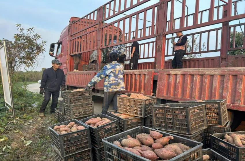 村民积极开展蜜薯的挖掘、分拣与转运