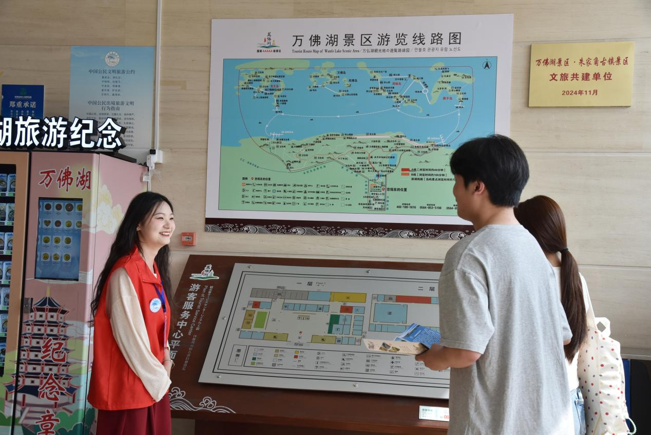 服务升级+实践育人,实现双向赋能。在旅游服务领域,景区与安徽外国语学院等院校深化合作,安排大学生实习生参与宣传策划、游客服务、演艺监督等工作,重点派驻游客服务大厅、纪念馆、游船等关键场所。这一模式既为景区充实服务力量、优化服务流程,也为学生搭建了“理论对接实践”的平台,实现校地资源优势互补。