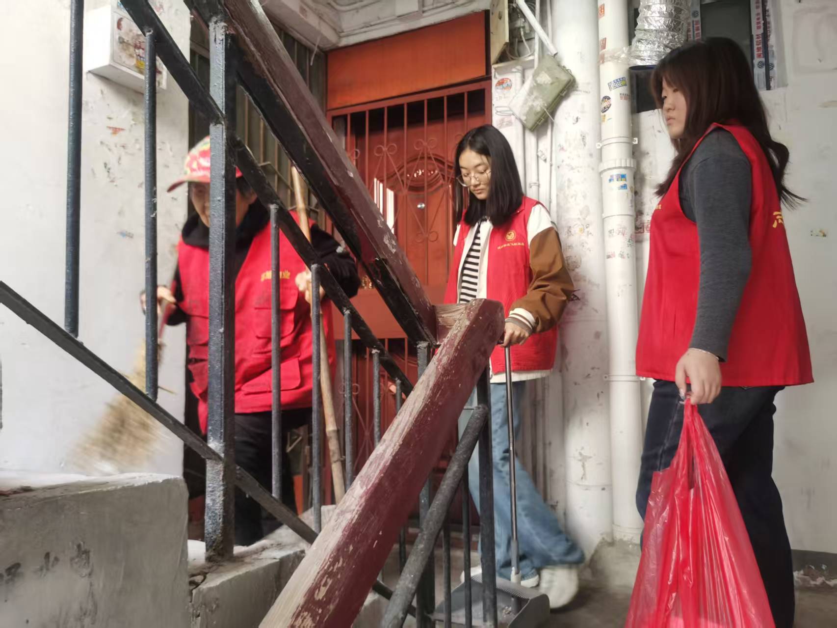 活动中,志愿者们聚焦社区服务大厅及周边楼栋的卫生难点,分组协作、全面清理。一组深入蜀山新村6栋楼共18个单元,逐一清理楼道堆积杂物和墙面小广告,不遗漏任何卫生死角;另一组对社区办公区域开展细致打扫,擦拭门窗、整理物品、搬运杂物,营造整洁有序的工作环境;其余志愿者则穿梭于小区楼道和绿化带间,捡拾白色垃圾与枯枝落叶,还原公共区域的干净整洁。大家干劲十足,配合默契,或挥动扫帚清扫路面,或协助物业清运废弃杂物。经过一下午的努力,累计清理各类杂物、漂浮物70余处,楼道变得通畅整洁,小区环境焕然一新。