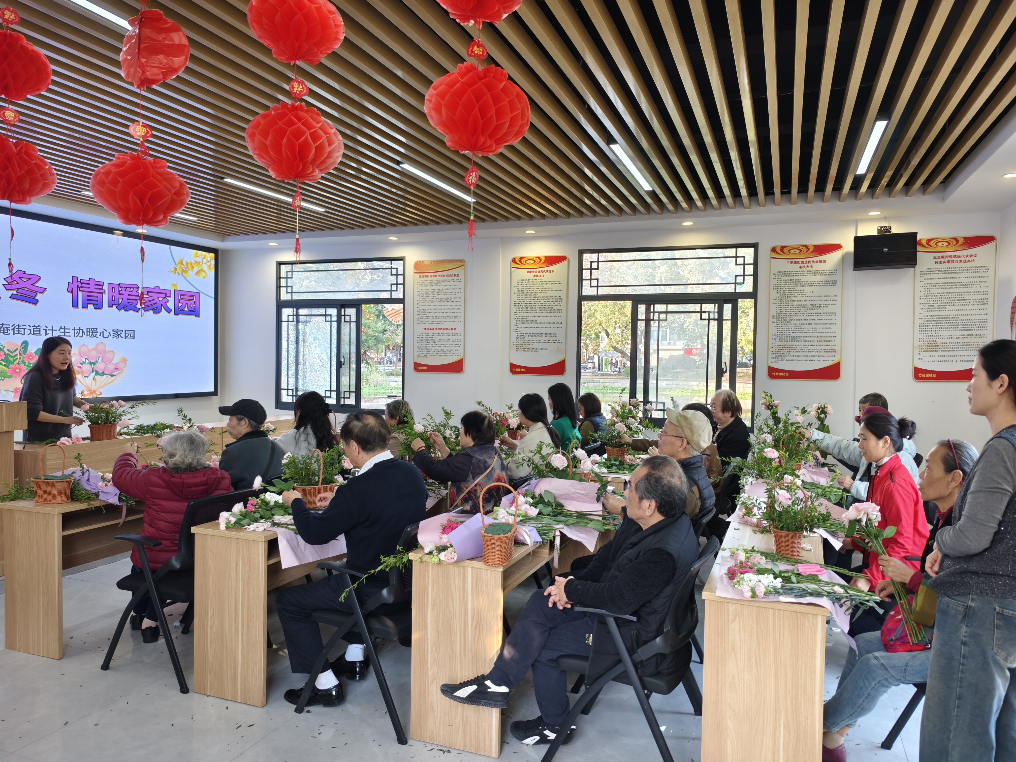 11月13日下午,合肥市蜀山区三里庵街道计生协暖心家园主办的“花漾暖冬 情暖家园”主题集体插花活动,在竹荫里社区活动室温情启航。二十余名失独家庭成员与陪同志愿者欢聚一堂,以花为媒,在指尖流转的芬芳中感受陪伴与温暖。