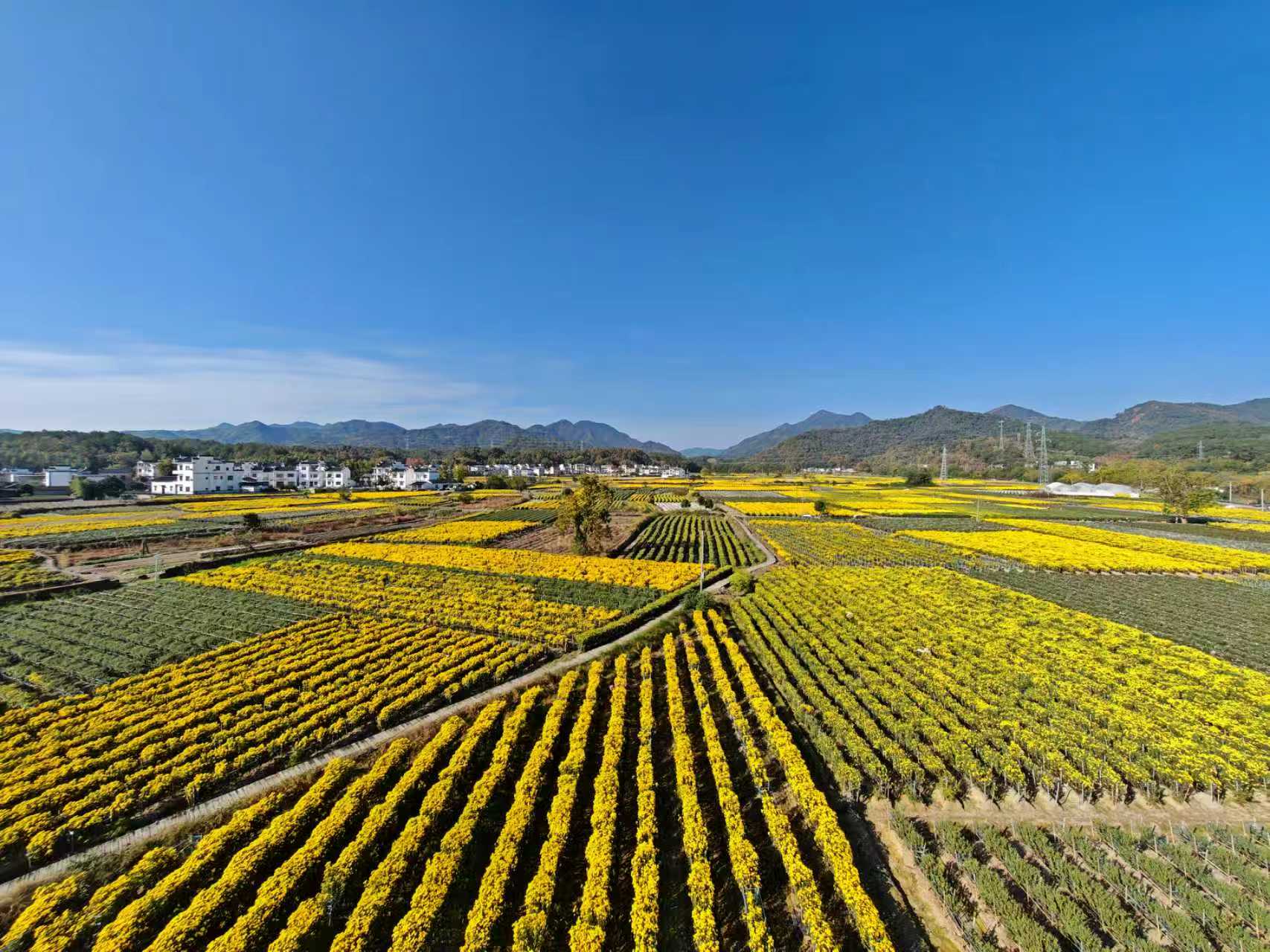 一花引领,全域芬芳。如今,菊花种植产业已从盐铺村辐射至齐云山、万安、蓝田、源芳等多个乡镇。休宁县依托优质乡村旅游资源,引导企业延伸产业链条,大力发展菊花深加工,不断提升产品附加值,走出一条农文旅深度融合的特色发展之路。据统计,今年全县菊花种植面积达1.81万亩,年产值突破2.3亿元。
