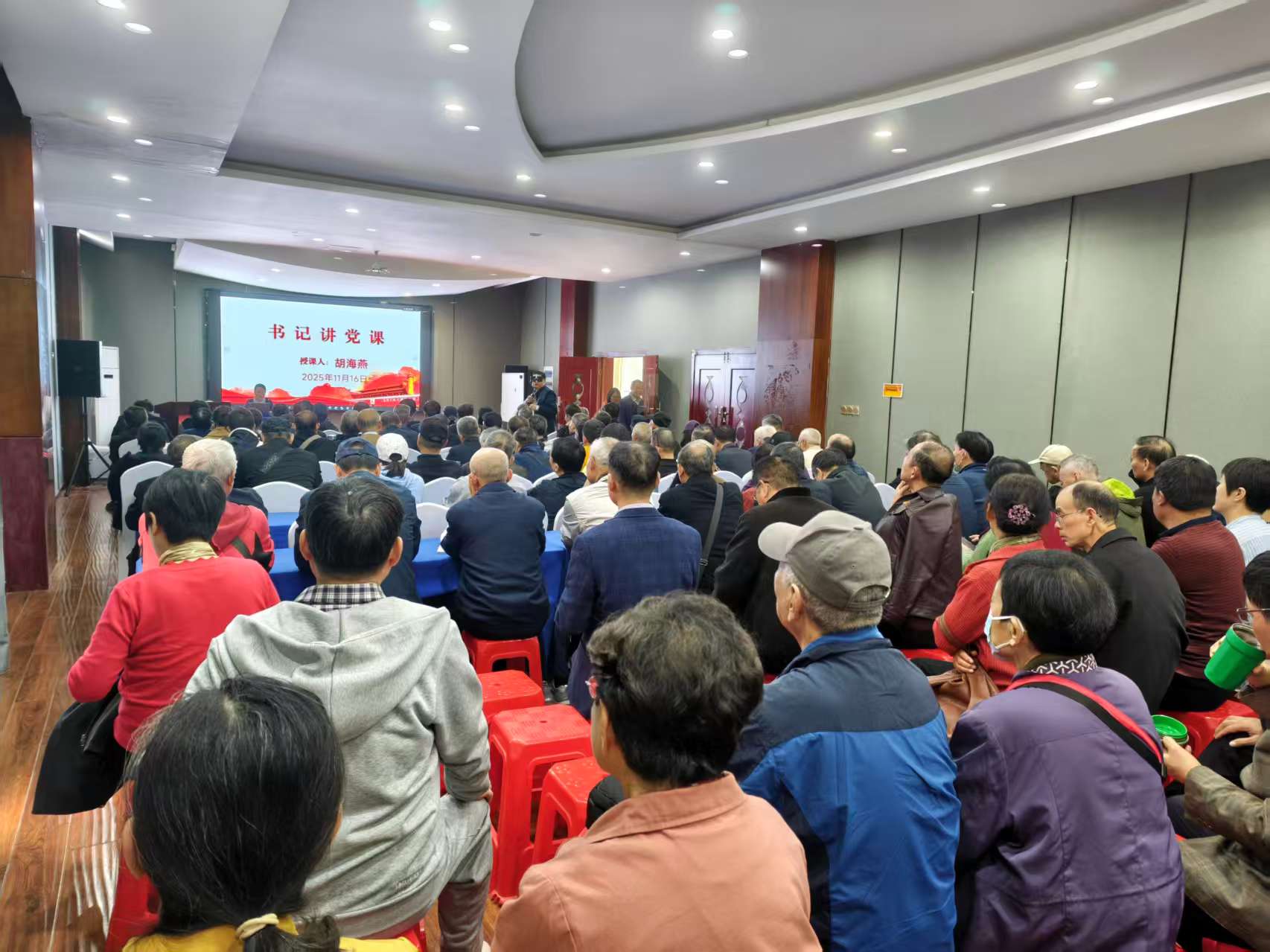 党课中,胡海燕结合社区治理实际,从“红色基因与民生服务相融”“革命精神与网格治理结合”两大维度展开讲解。她以新四军江北指挥部等红色资源中的为民初心为例,分享社区在老旧小区改造、老年食堂运营等民生实事中的实践经验;结合网格内矛盾调解、特殊群体帮扶案例,阐述如何以革命先辈“攻坚克难、同心协力”的精神,破解网格治理难题,让党员直观理解红色基因在基层工作中的实践路径。