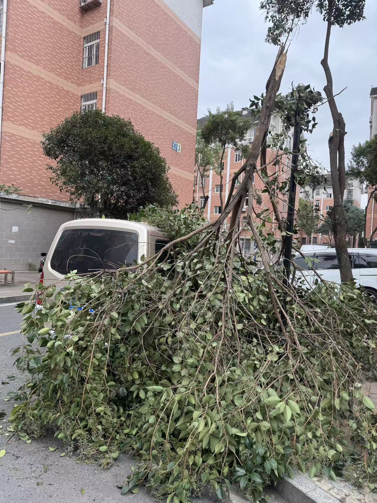 树枝折断砸向车辆 社区迅速响应解民忧