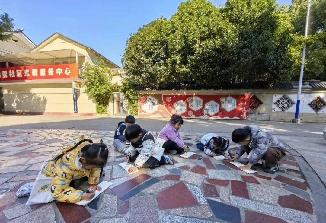 还有的班级开展“寻徽派古韵,抒爱乡童心”社区实践活动。孩子们走进社区,在老师引导下探寻徽派建筑的独特风貌——白墙黛瓦洁净雅致,马头墙线条灵动,木雕窗棂精巧别致。老师用通俗语言讲解建筑背后的家乡文化,解答孩子们的好奇提问。社区广场上,孩子们手持画笔,将眼中的建筑美景定格在画纸;清风亭内,大家观察细节、合影留念,尽情感受古色古香的氛围。活动以实景探索与动手创作相结合,让孩子们在实践中加深对家乡的认知,悄悄播下爱国爱乡的种子。